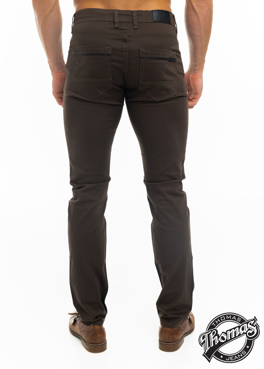 A Thomas Jeans barna vászon férfi nadrág ideális választás mindennapi viselethez, ha fontos számodra a kényelem, a minőség és az elegancia. A nadrág 98% pamut és 2% elasztán anyagból készült, így kellemes tapintású, jól szellőző és enyhén rugalmas – ezáltal maximális mozgásszabadságot biztosít egész nap.