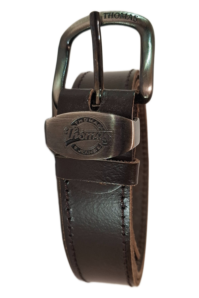 A fekete csat antikolt fémhatású, THOMAS gravírozással, amely exkluzív megjelenést kölcsönöz az övnek.
