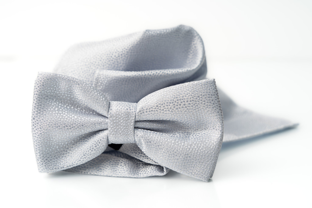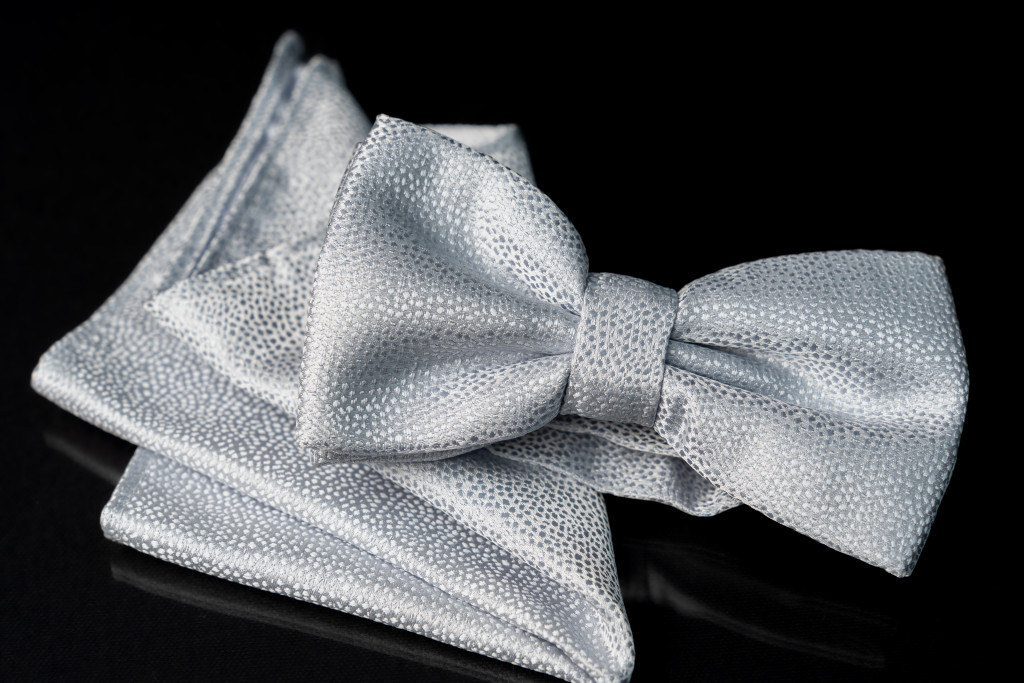 Ez a világosszürke csokornyakkendő és díszzsebkendő szett ideális választás mindazok számára, akik klasszikus, mégis modern megjelenést szeretnének elérni. A csokornyakkendő finom szövésű, elegáns felületű anyagból készült, amely diszkréten fénylik, így tökéletesen illeszkedik alkalmi és ünnepi öltözethez.