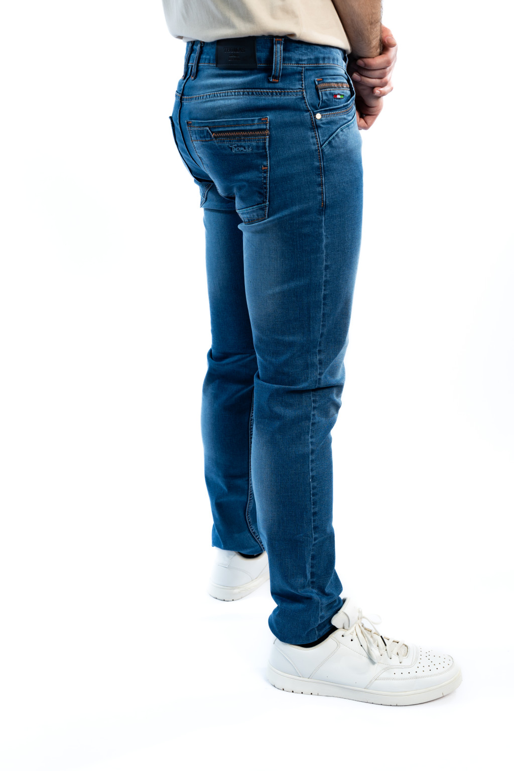 A koptatott design modern, letisztult megjelenést ad, miközben optikailag formálja a lábakat. A klasszikus középkék árnyalat könnyedén kombinálható pólóval, inggel, pulóverrel, vagy akár sportosan elegáns szettel is.