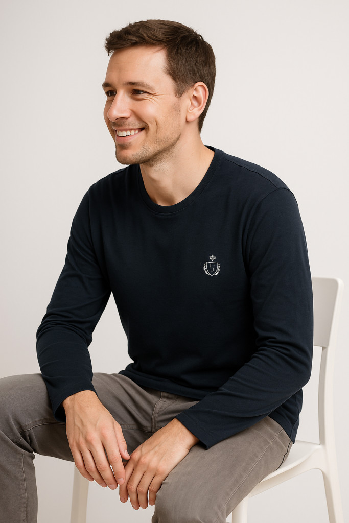 A Thomas Jeans fekete hosszú ujjú férfi póló a klasszikus, stílusos megjelenés és a kényelmes pamut anyag tökéletes kombinációja. 100% pamutból készült, így természetes, bőrbarát és légáteresztő viselet, amely ideális mindennapi használatra – akár önmagában, akár pulóver vagy zakó alatt.