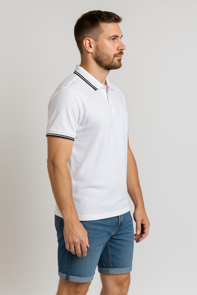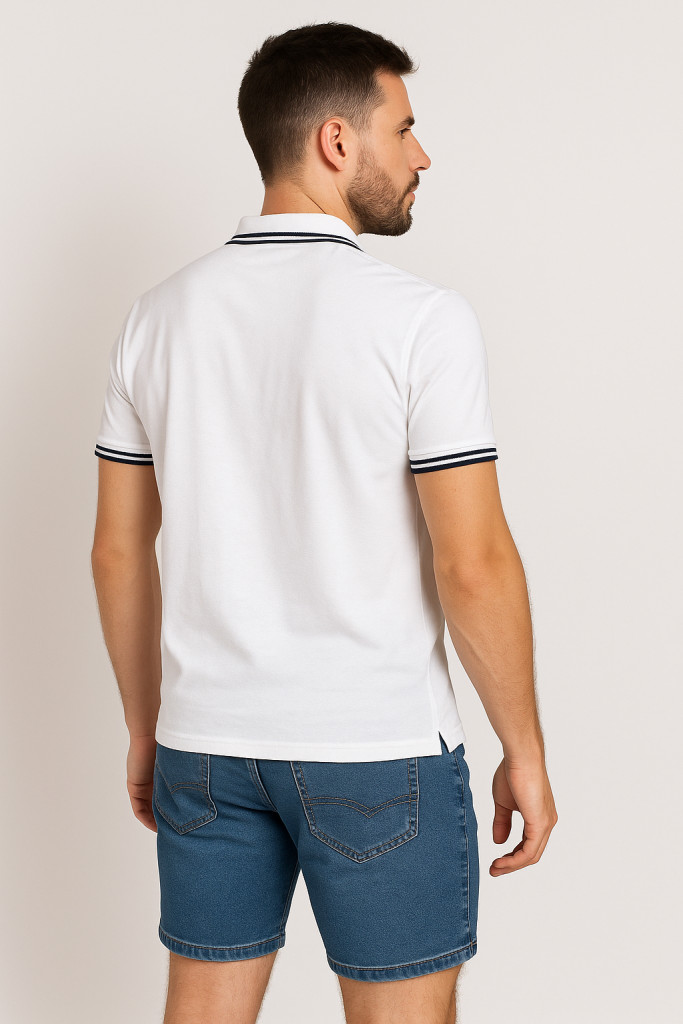 A Thomas Jeans fehér férfi galléros póló a klasszikus elegancia és a modern kényelem tökéletes ötvözete. Kiváló minőségű 97% pamut és 3% elasztán anyagból készült, amely puha tapintású, jól szellőzik, és enyhén rugalmas, így kényelmesen illeszkedik a testhez.