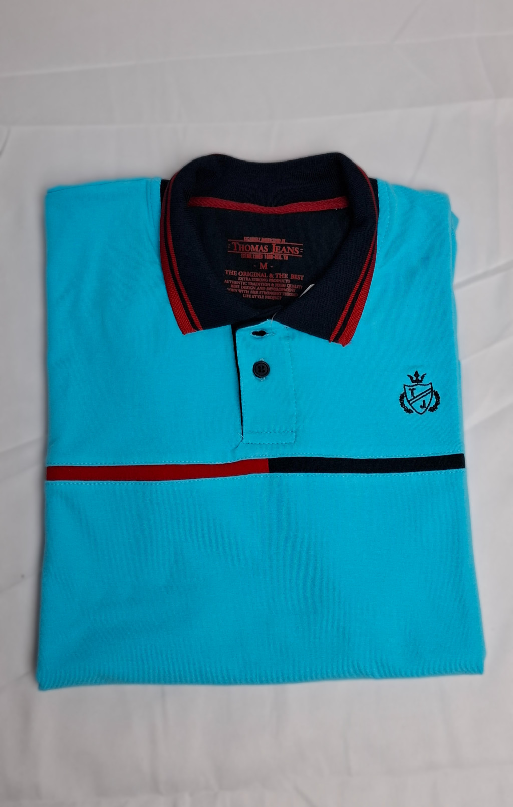 A Thomas Jeans türkizkék galléros póló azoknak a férfiaknak készült, akik szeretik a minőségi, kényelmes és trendi ruhadarabokat – tökéletes választás minden alkalomra.