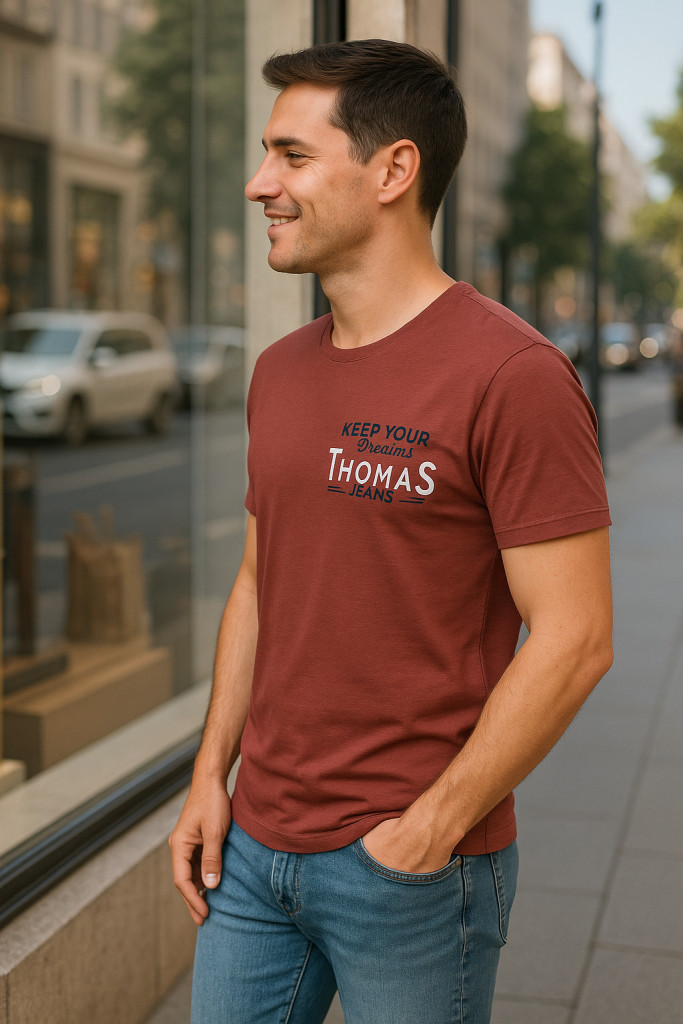 A Thomas Jeans mályva „Keep Your Dream” kerek nyakú póló a modern minimalizmus és a kényelmes viselet tökéletes egyensúlya. A visszafogott mályva árnyalat elegáns és karakteres, míg a mellkason elhelyezett kis THOMAS JEANS logó és „KEEP YOUR DREAM” felirat fiatalos, inspiráló megjelenést kölcsönöz.