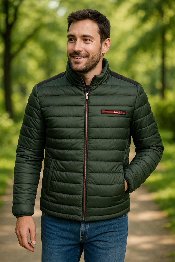A Thomas Jeans zöld steppelt férfi dzseki a stílus, a praktikum és a kényelmes viselet tökéletes egyensúlya.