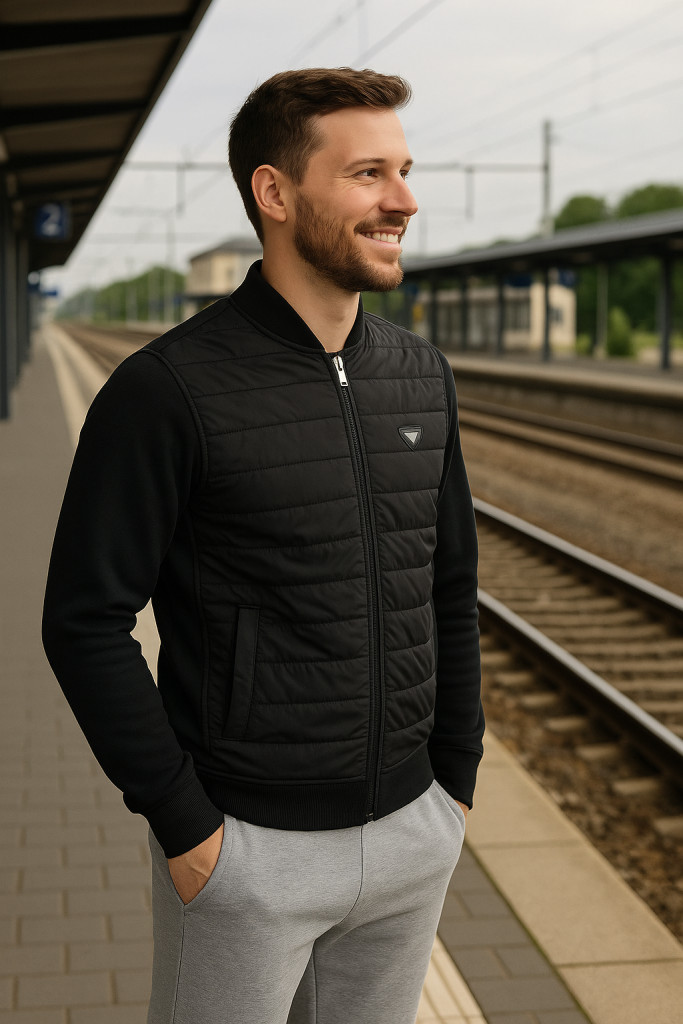 A Thomas Jeans fekete steppelt férfi kardigán a praktikum és stílus tökéletes ötvözete. A modern, fekete színű dizájn és a steppelt elülső rész sportosan elegáns megjelenést kölcsönöz, amely könnyedén illeszkedik bármilyen öltözködési stílushoz.