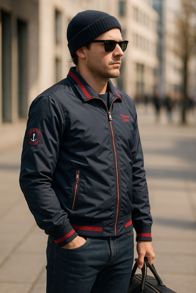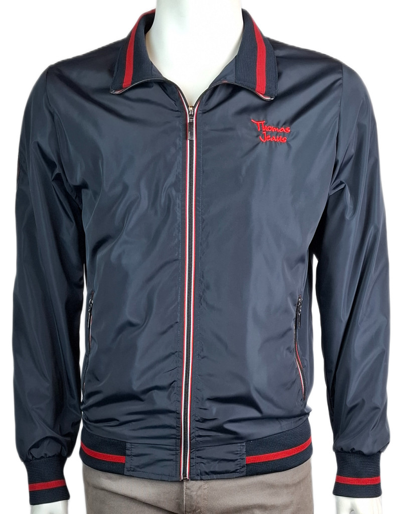 A Thomas Jeans sötétkék férfi széldzseki a praktikum és stílus tökéletes kombinációja. Modern, sötétkék színben, piros részletekkel díszített gallérral és ujjvéggel készült, ami sportos eleganciát biztosít a mindennapi megjelenéshez.