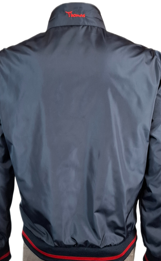 A bordázott gallér és passzé piros díszítéssel feldobja a klasszikus szabást, a karján található horgonyos Thomas Jeans embléma pedig tengerész stílusú részlet, ami egyedivé teszi a dzsekit.