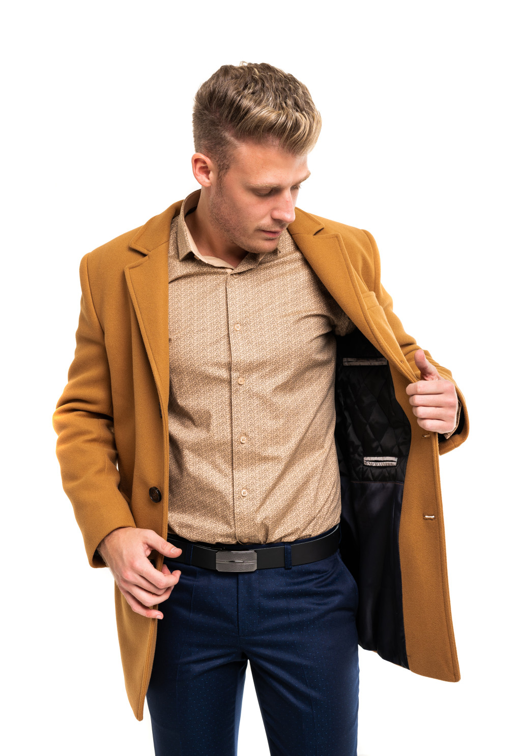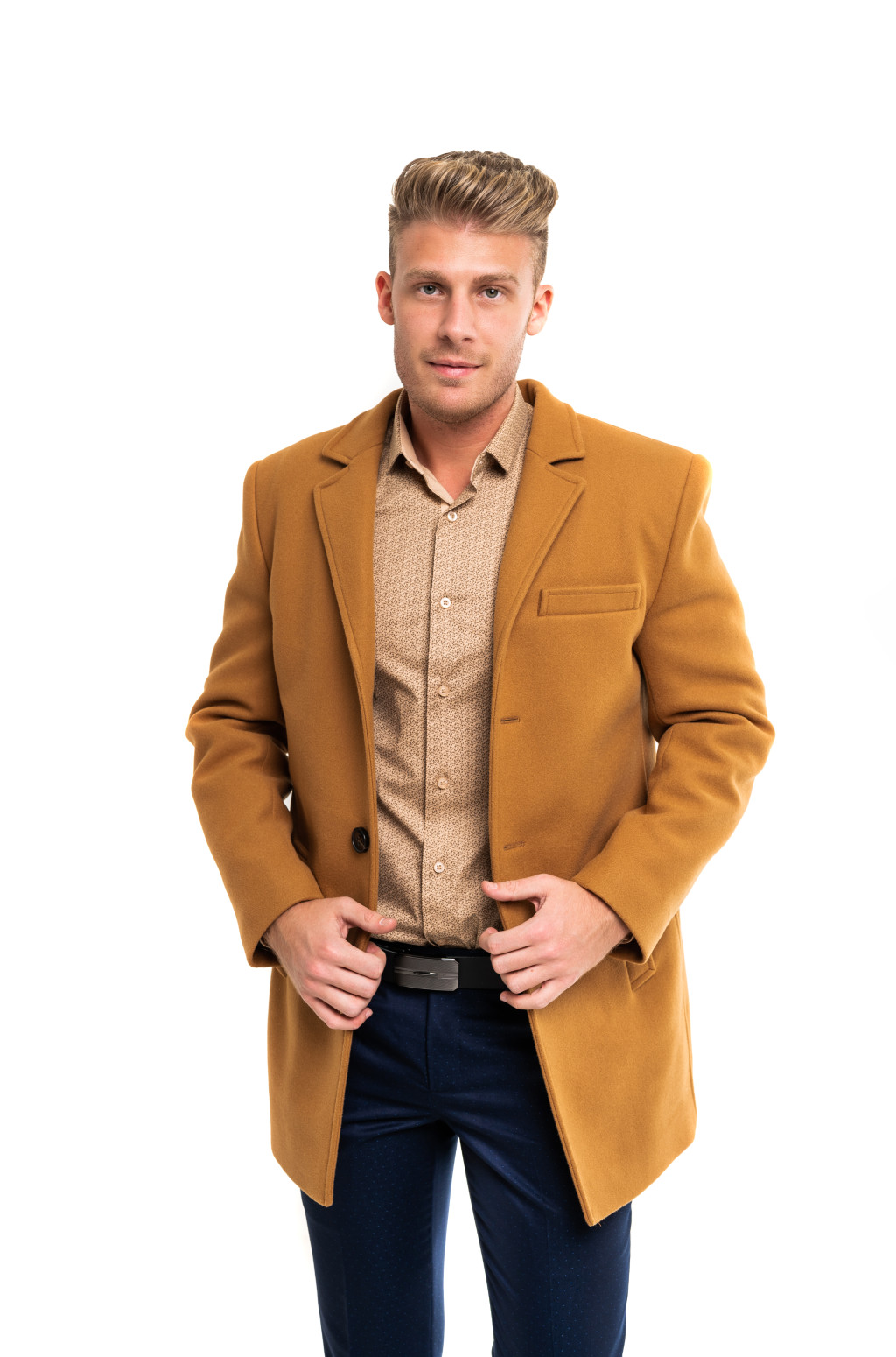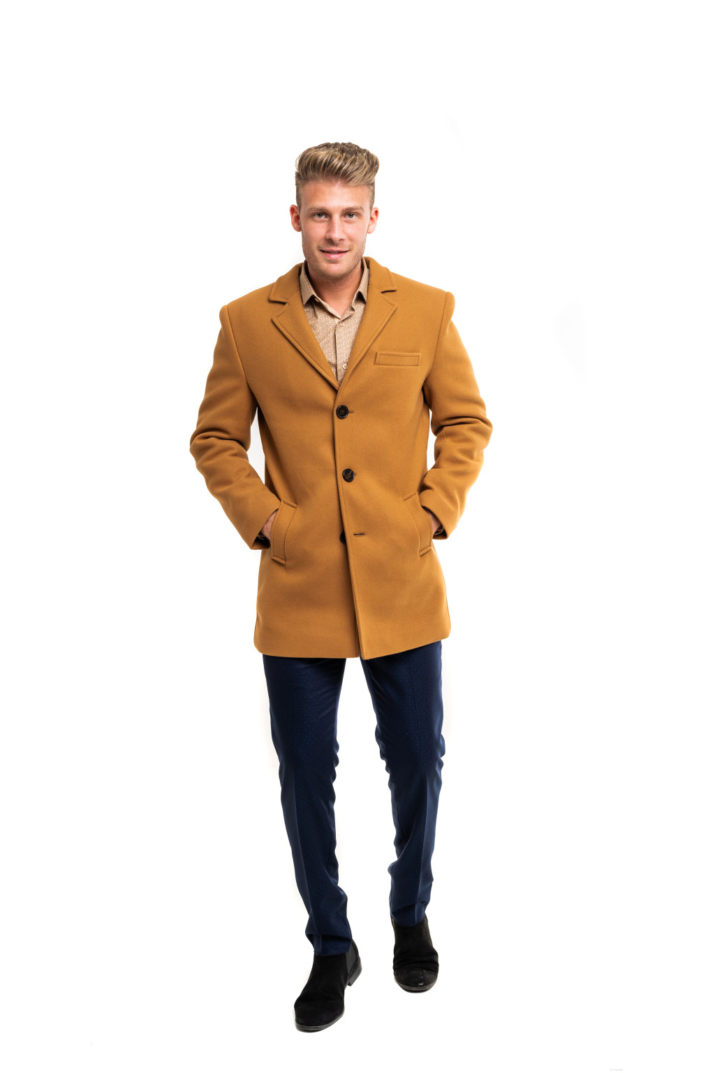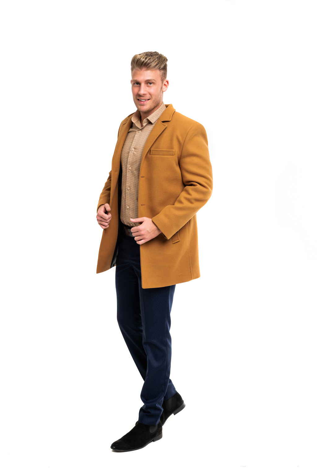 A kabát vegyileg tisztítható, hogy hosszú távon megőrizze formáját és minőségét. Legyen szó üzleti találkozóról, városi sétáról vagy esti programról, ez a kabát minden alkalommal magabiztos és férfias megjelenést biztosít.