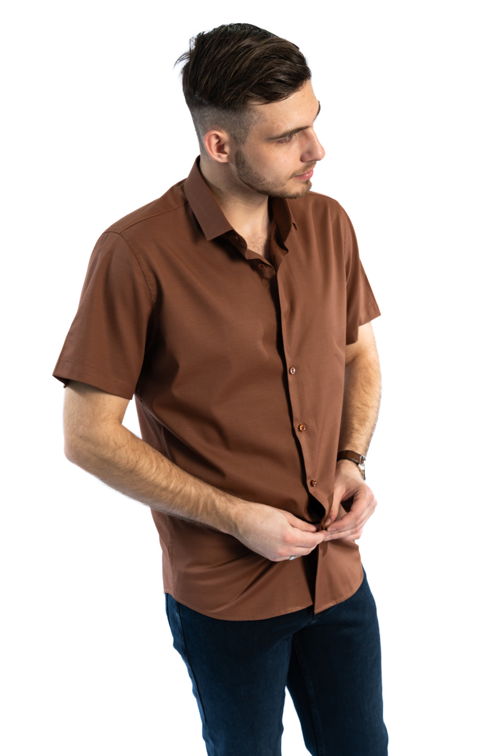 A barna rövid ujjú férfi ing rendkívül sokoldalúan viselhető: