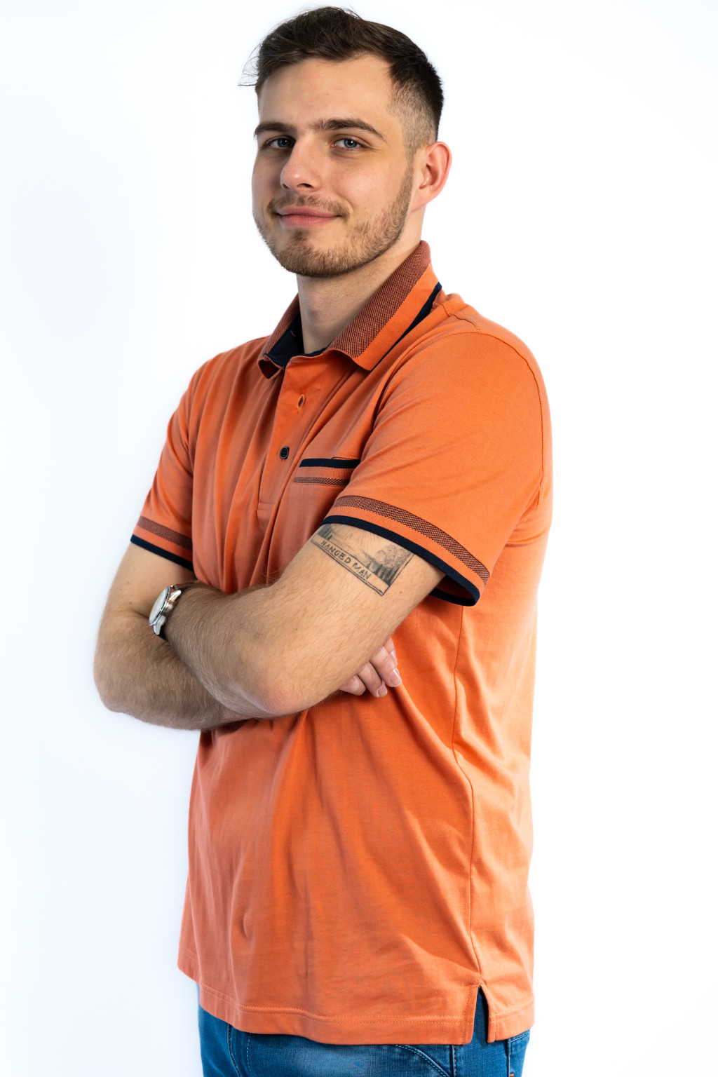 Ez a tégla színű férfi polo póló tökéletes választás: