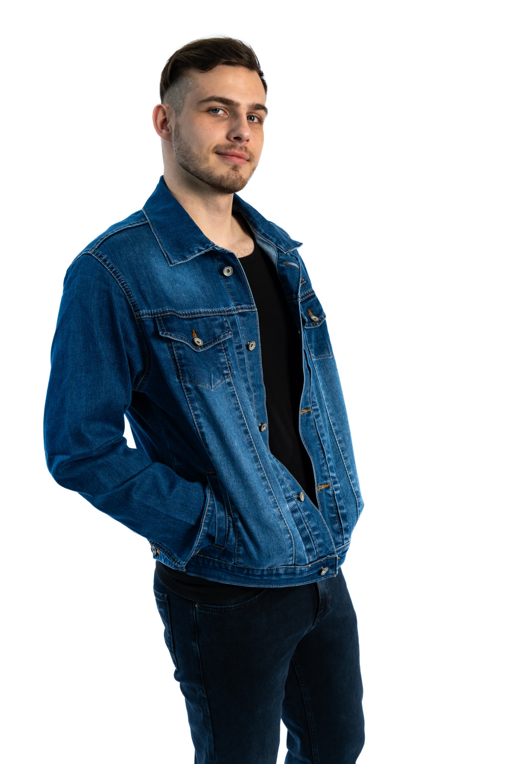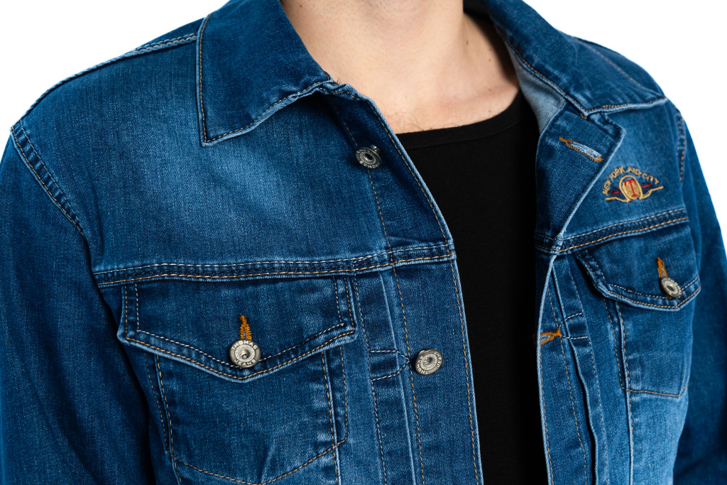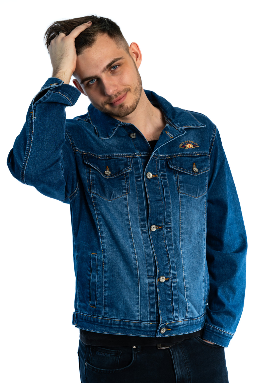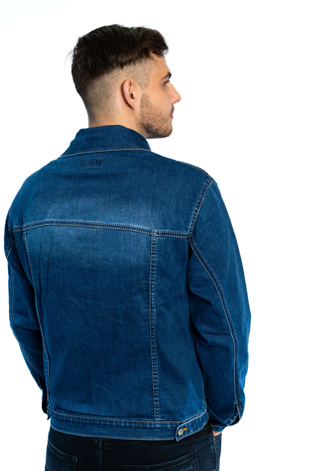 A közepesen koptatott kék farmerdzseki karakteres, mégis könnyen kombinálható darab, amely tökéletesen illik a modern férfi ruhatárába.