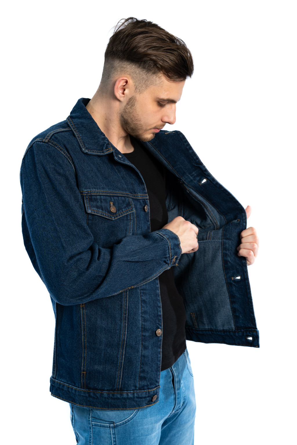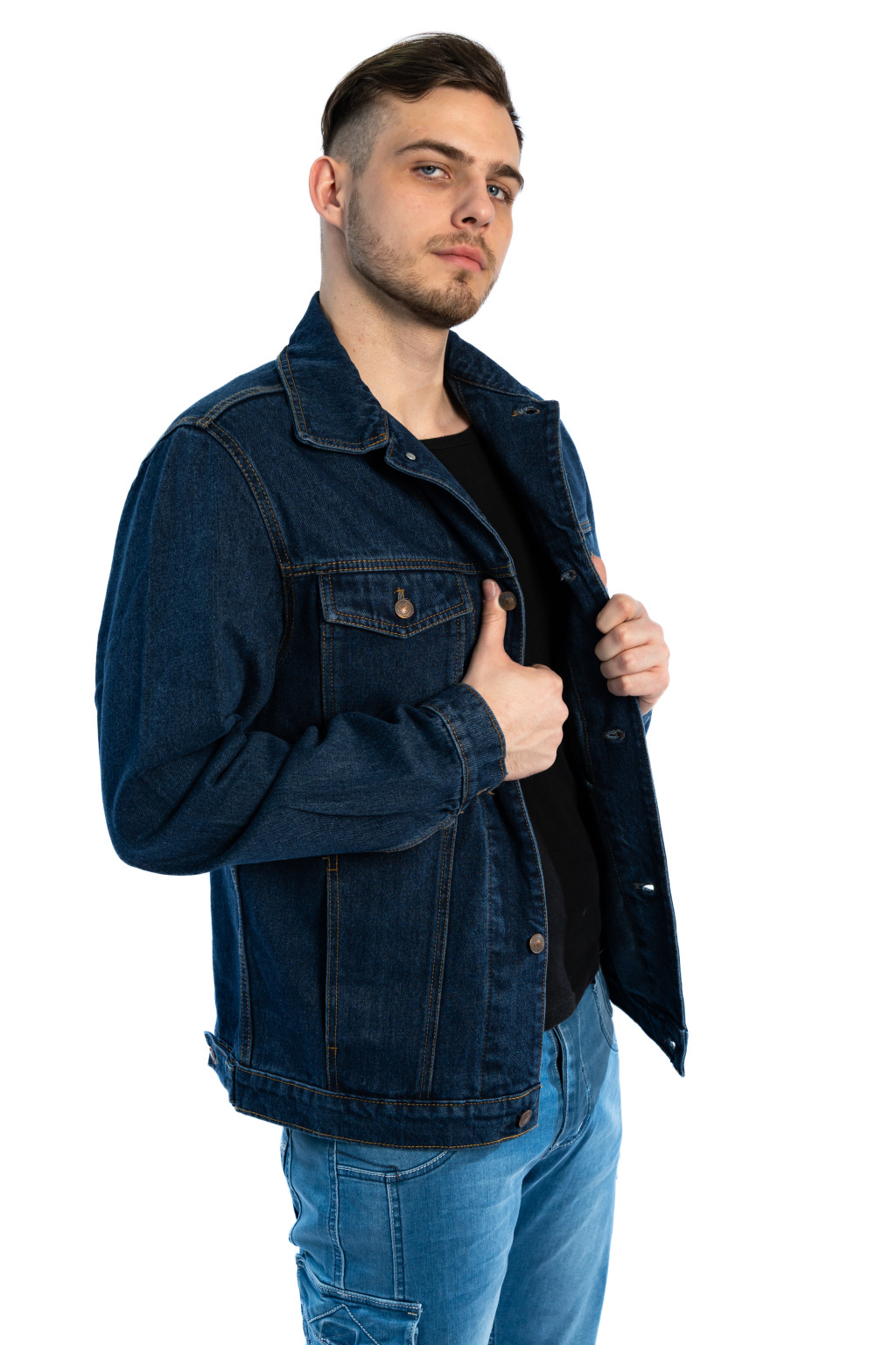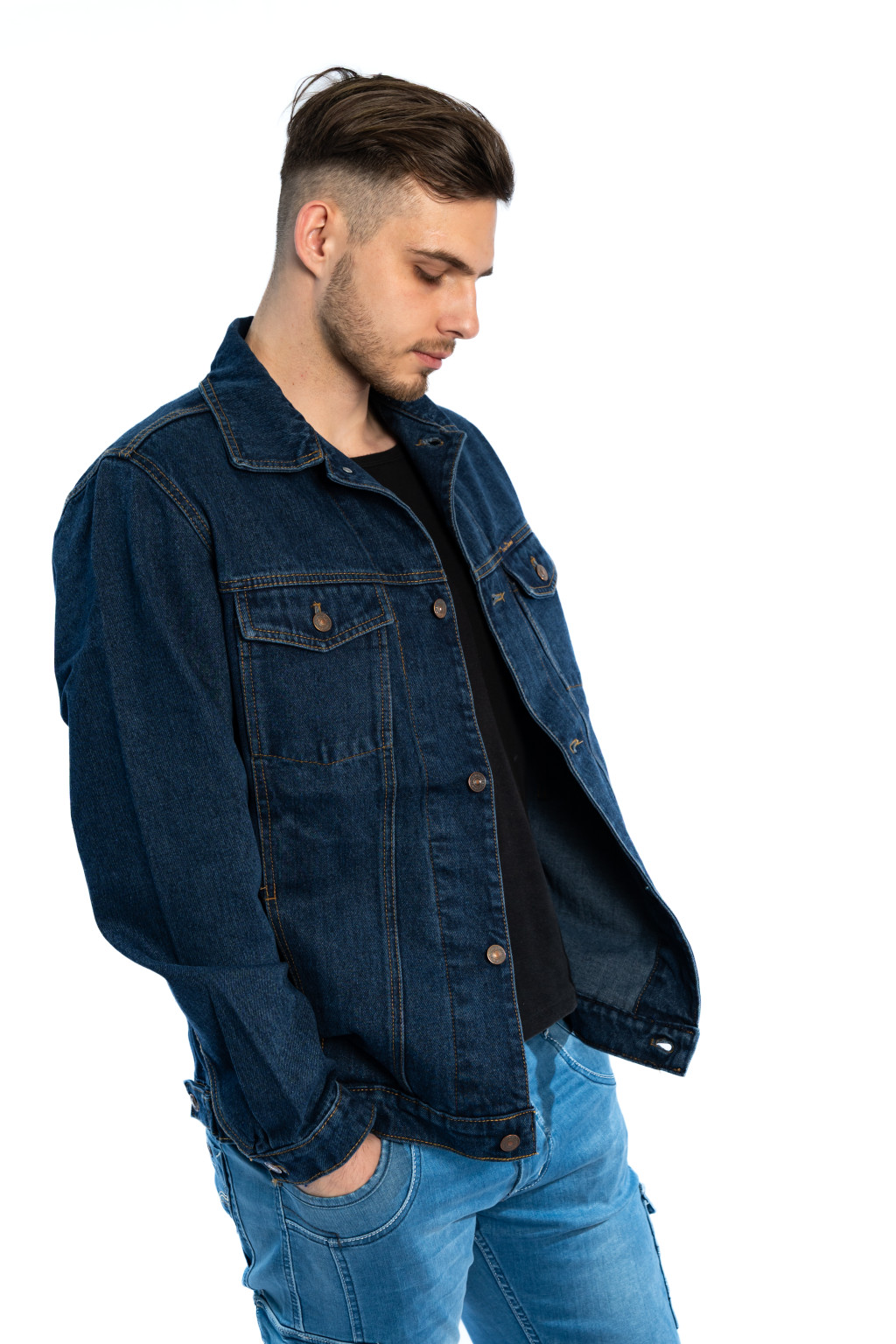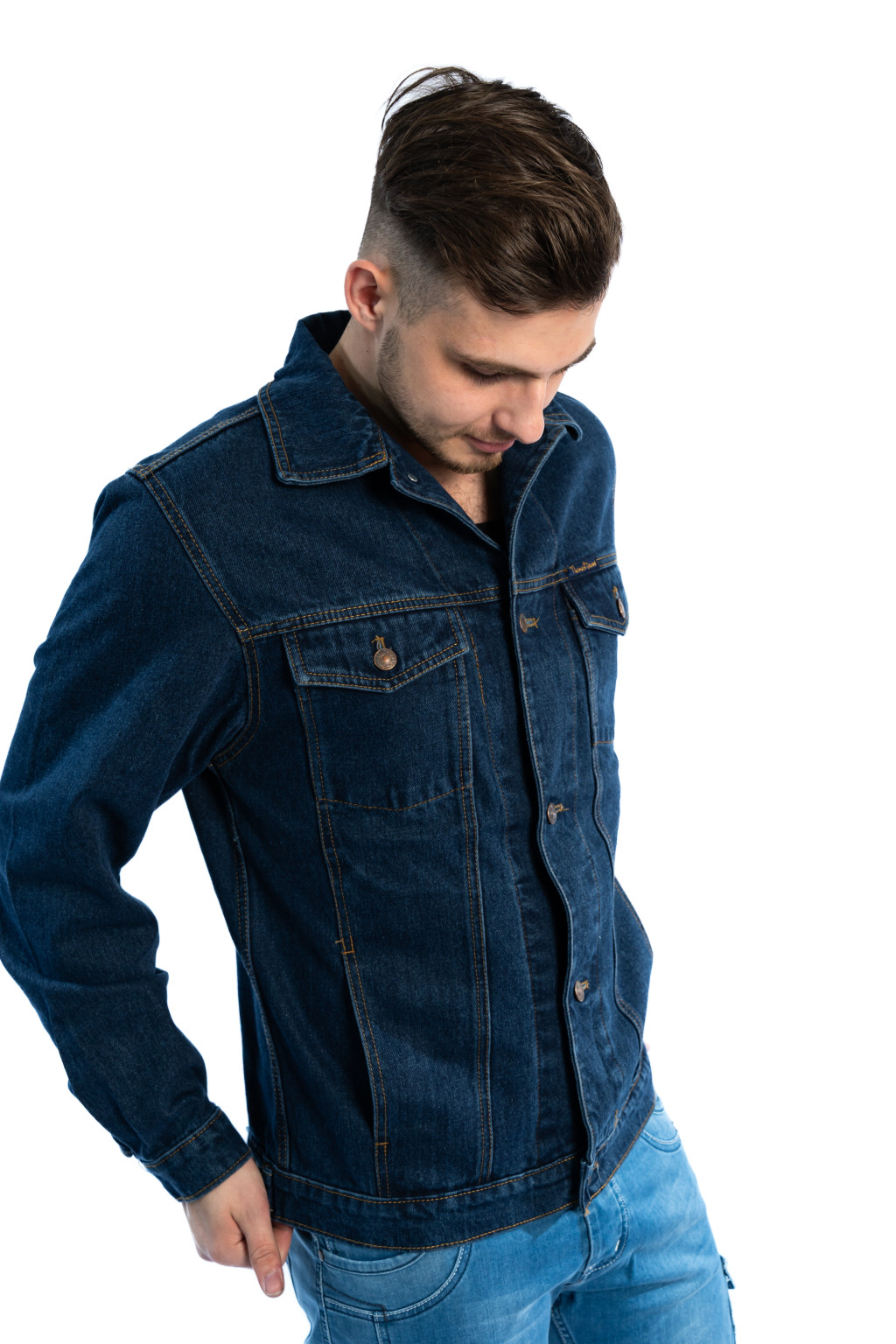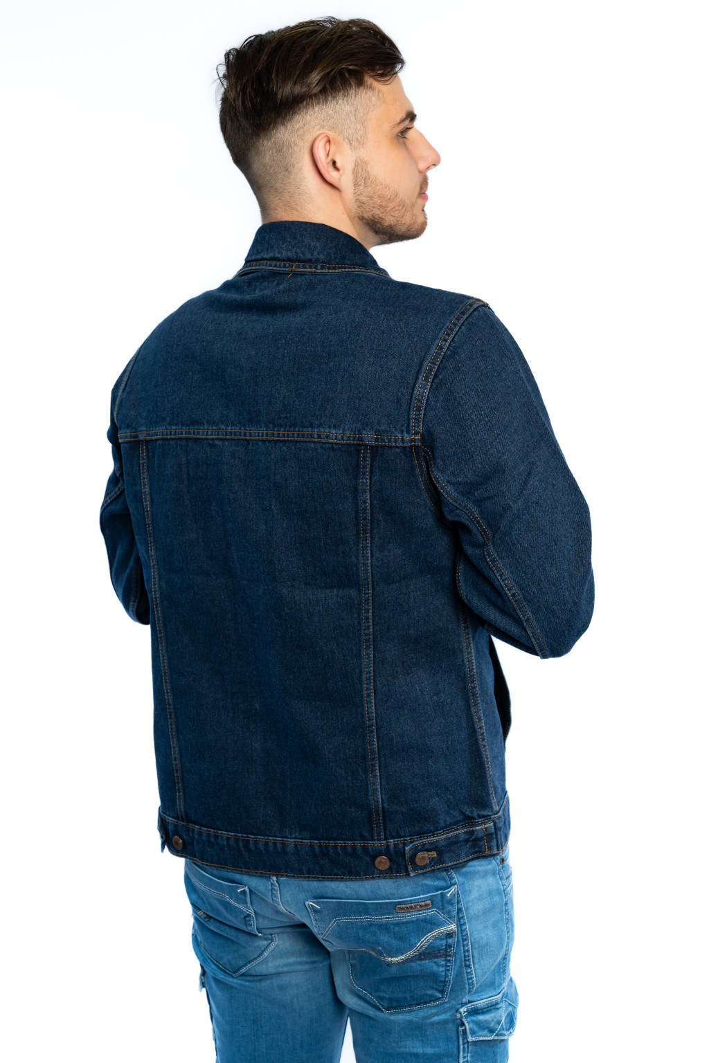 Ez a sötétkék férfi farmerdzseki egy igazi alapdarab, amely minden férfi ruhatárában megállja a helyét. A klasszikus kialakítás és a 100% pamut denim anyag garantálja a tartósságot, a kényelmet és az időtálló stílust.