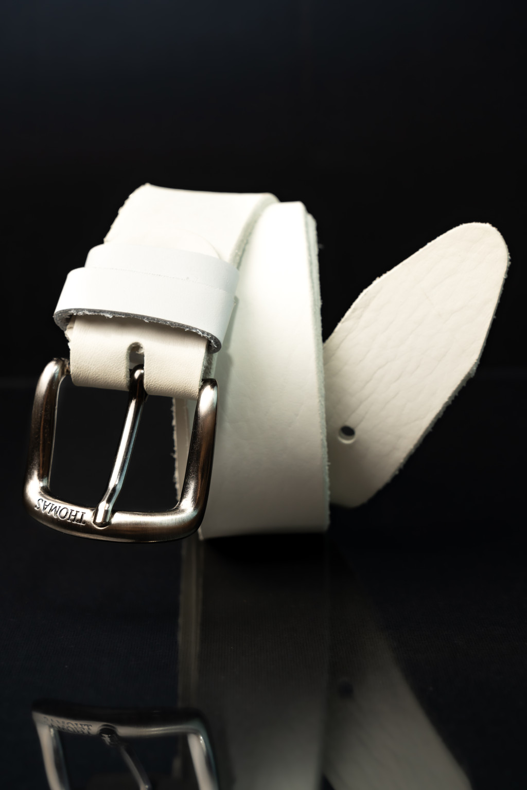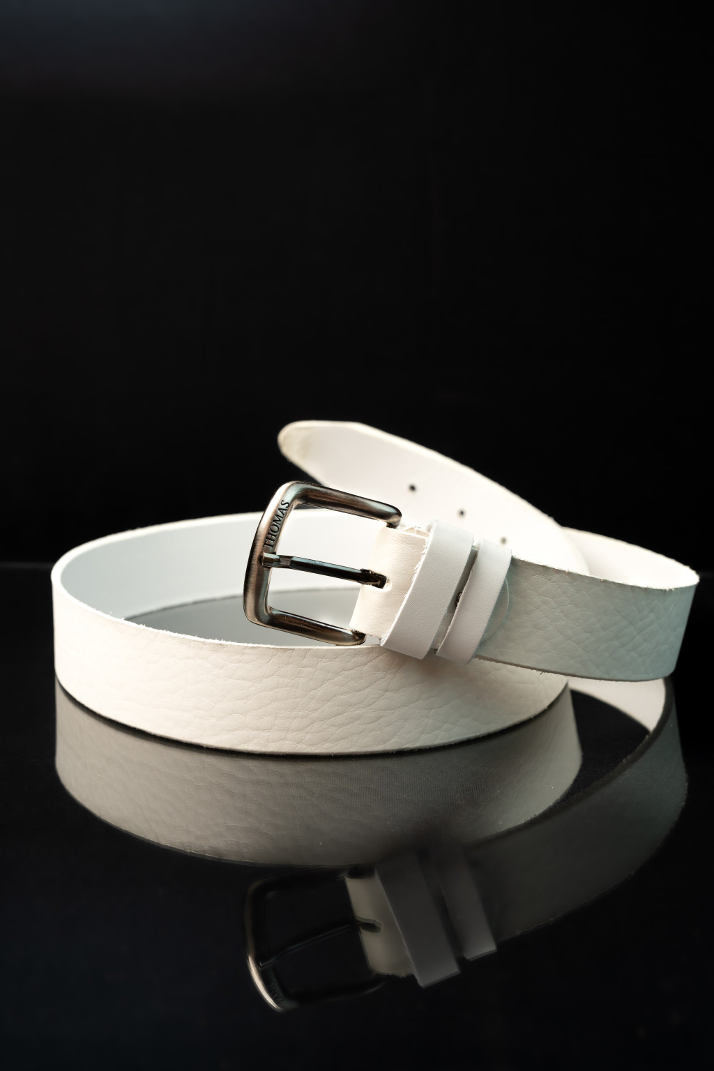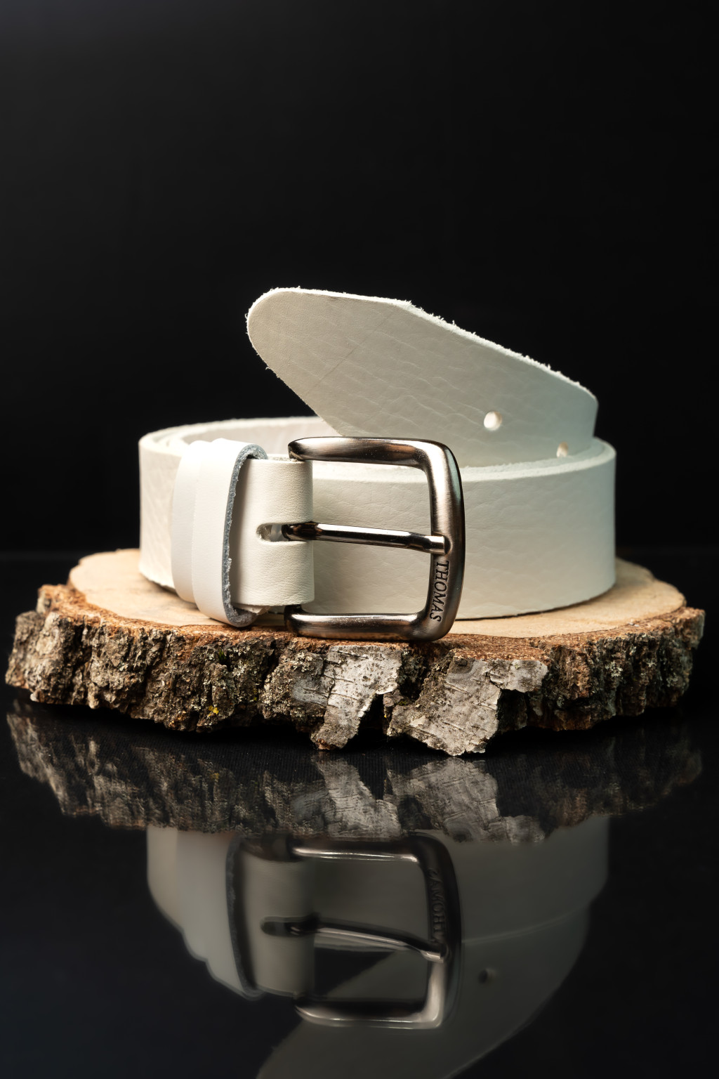 Ez a fehér bivalybőr öv a klasszikus stílus és a modern elegancia tökéletes ötvözete. A gondosan válogatott valódi bivalybőrből készült öv rendkívül ellenálló, mégis rugalmas, így hosszú távon is megőrzi formáját és esztétikus megjelenését.