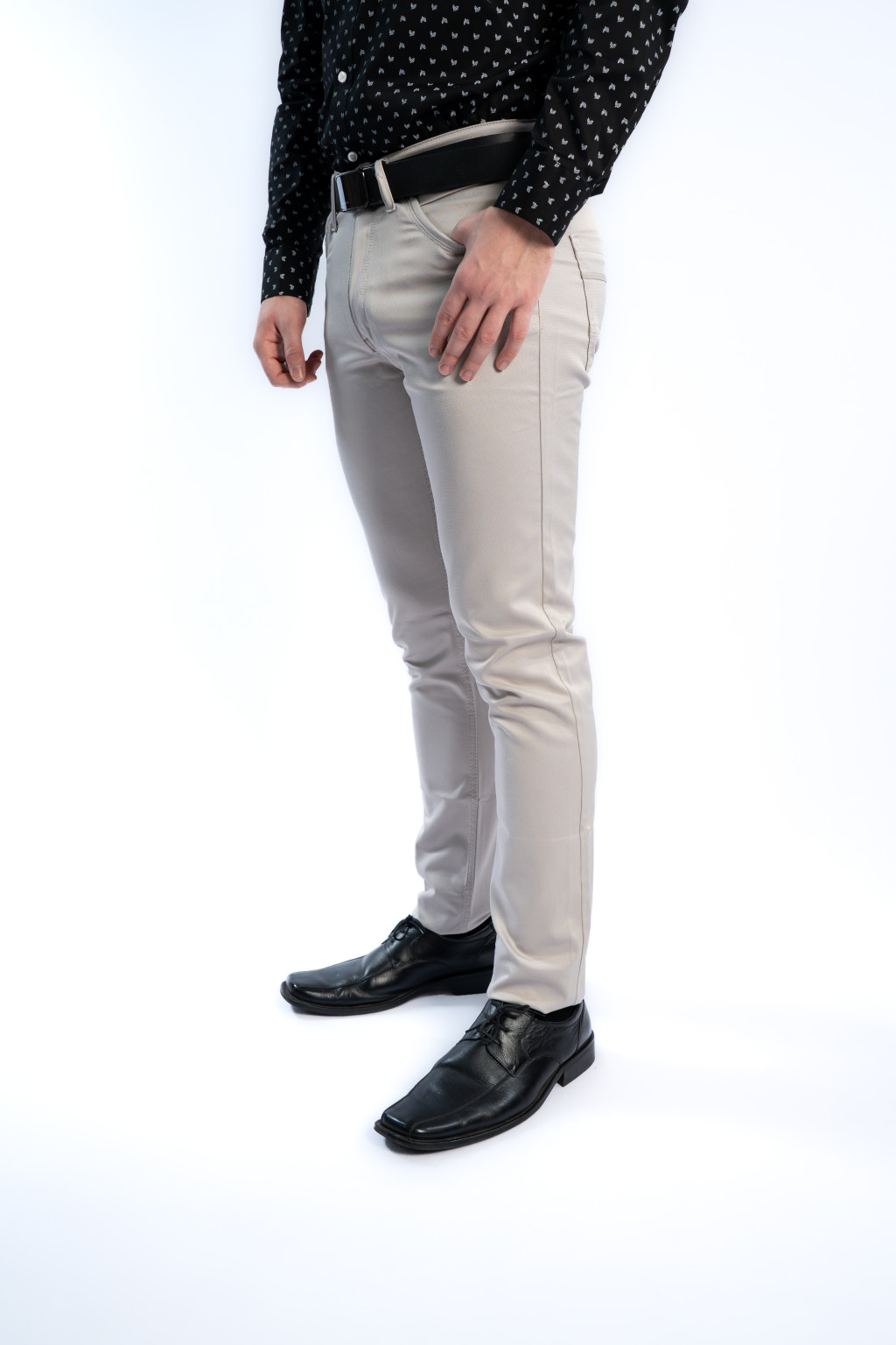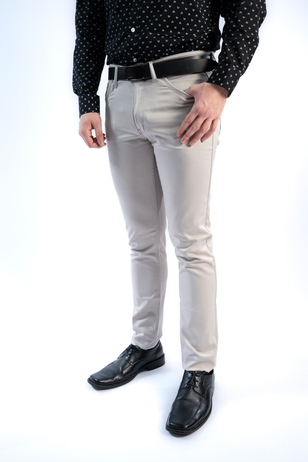 A nadrág anyaga 98% pamut és 2% elasztán, amely garantálja a puha tapintást, tartósságot és rugalmasságot. Az enyhén elasztikus szövet követi a test mozgását, így ez a férfi slim nadrág egész nap kényelmes viselet marad – akár irodában, utazás közben vagy egy esti programon.