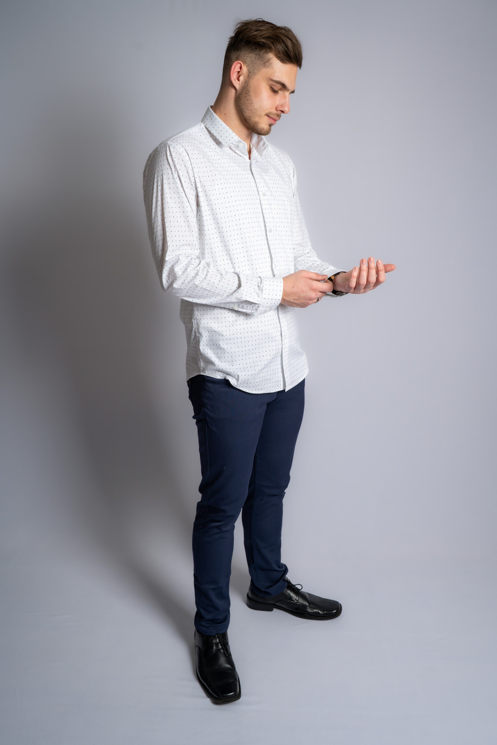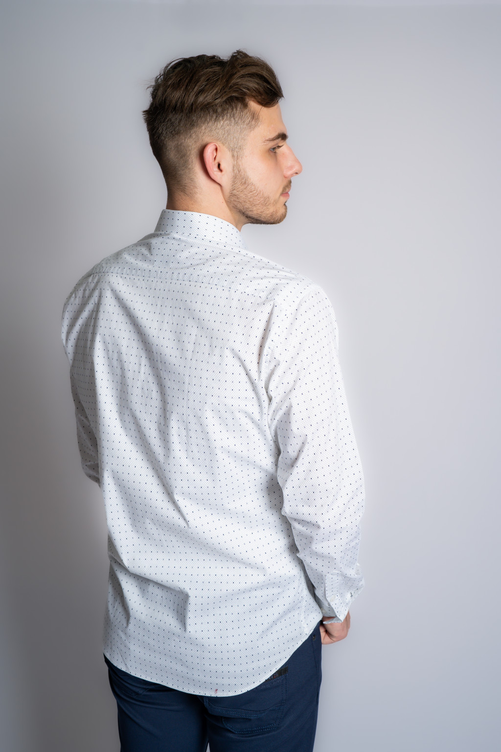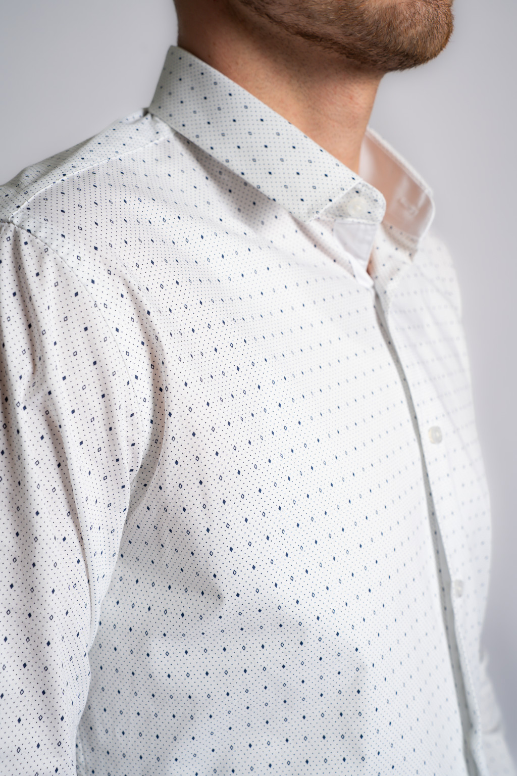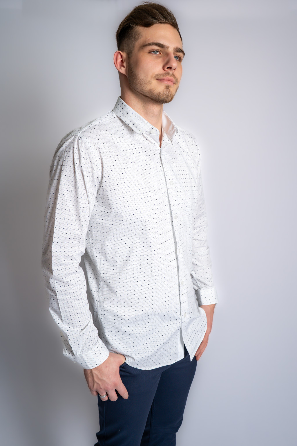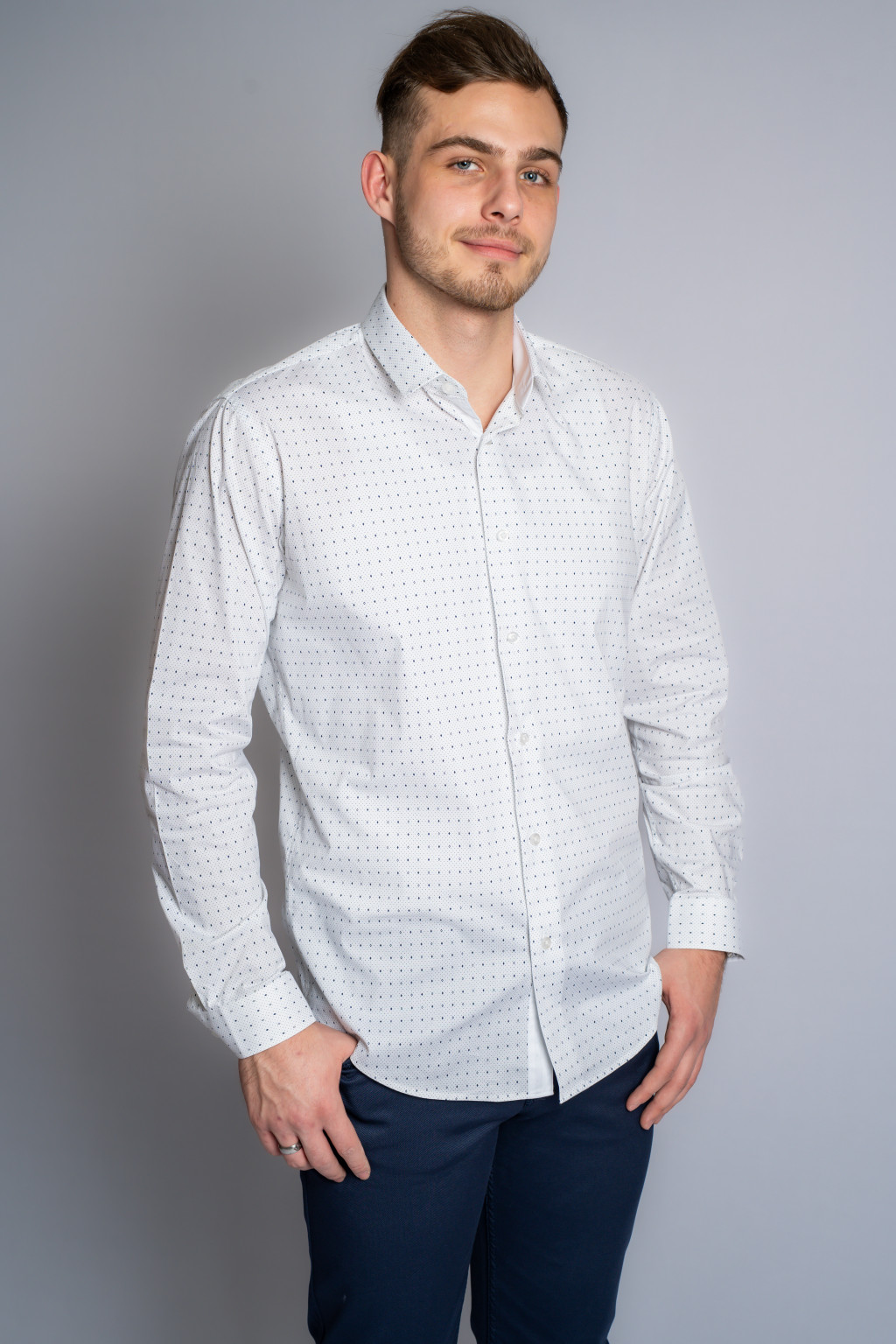 A finom mintázat és a letisztult fehér alapszín garantálja, hogy az ing irodai viseletként, alkalmi ingként és hétköznapi férfi ingként is tökéletesen megállja a helyét.