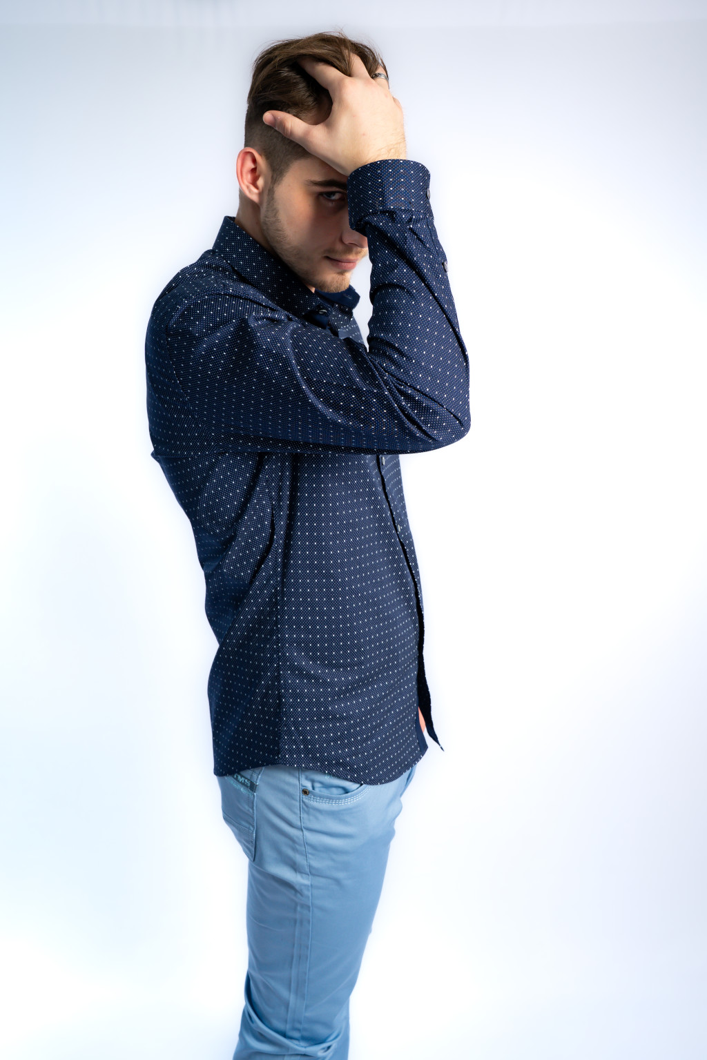 A Thomas Jeans prémium slim fit férfi ing azoknak készült, akik a mindennapokban is igényes, stílusos megjelenésre törekszenek. Ez a sötétkék mintás férfi ing tökéletesen ötvözi az elegáns férfi divat és a kényelmes, modern viselet minden előnyét. A gondosan megtervezett karcsúsított slim fit szabás követi a test vonalát, így magabiztos, férfias megjelenést biztosít.