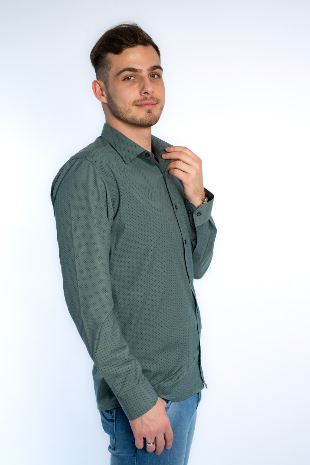 A visszafogott minta és az elegáns zöld árnyalat teszi ezt az inget igazán univerzális férfi inggé, amely munkahelyen, randevún vagy családi eseményen is megállja a helyét.