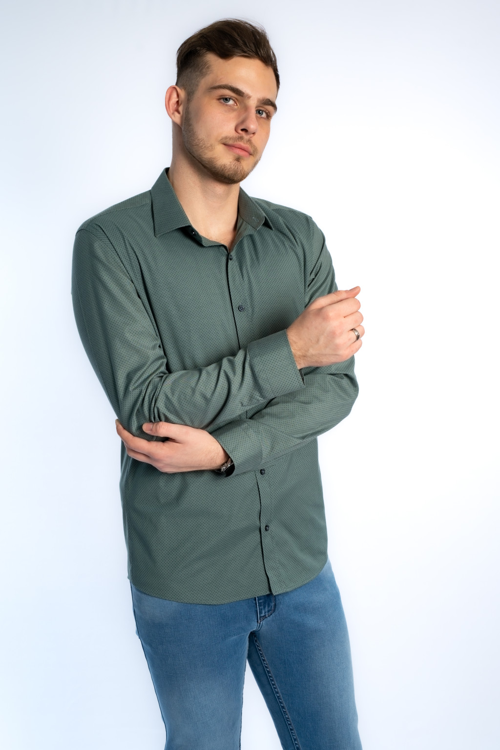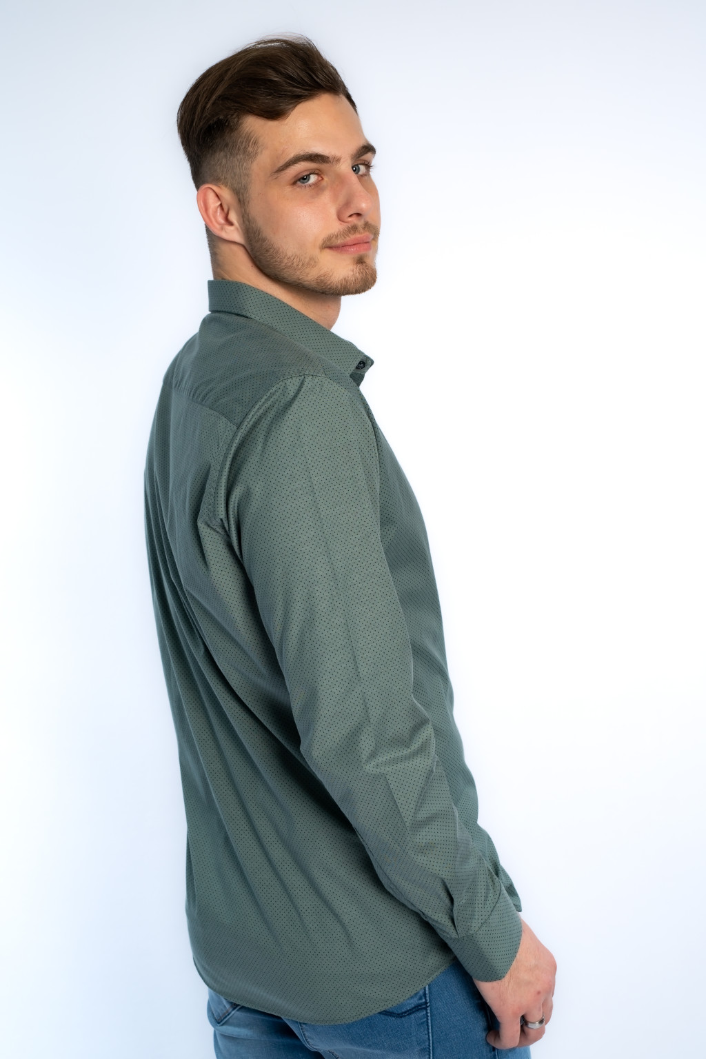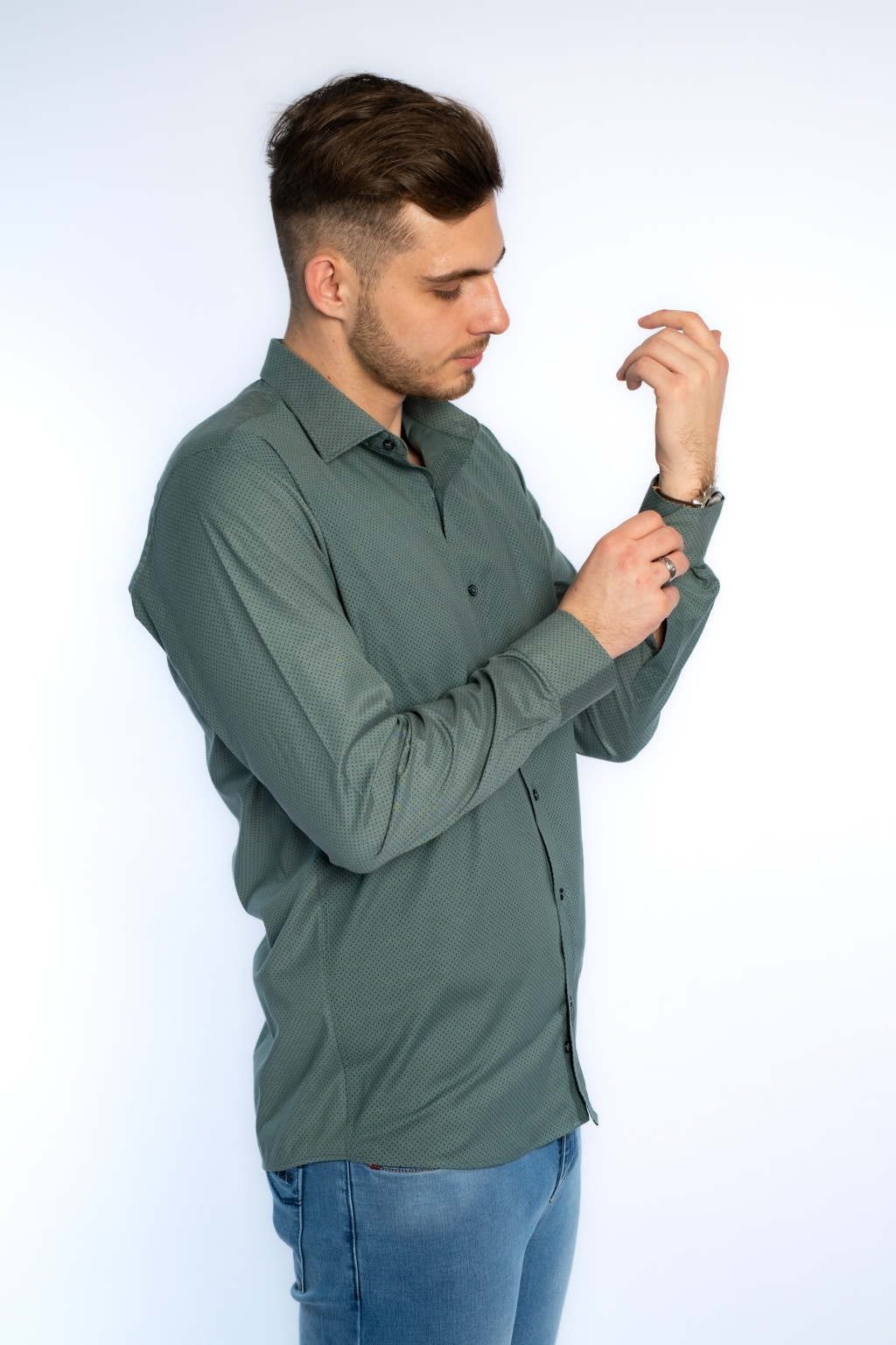 Ez a zöld aprómintás férfi ing könnyedén kombinálható: