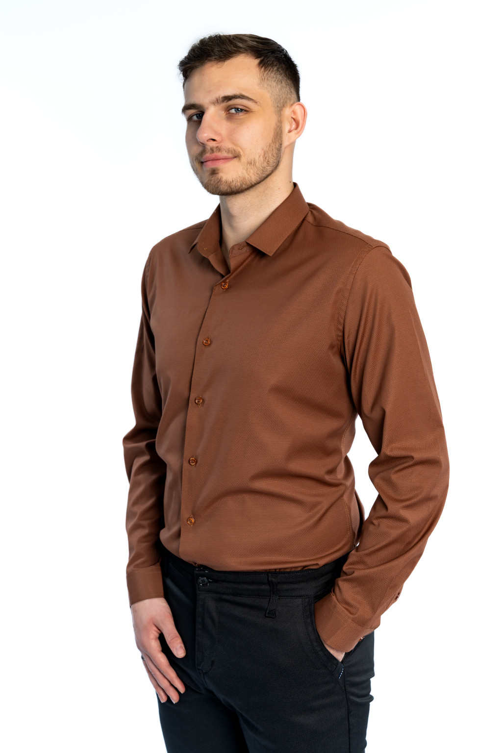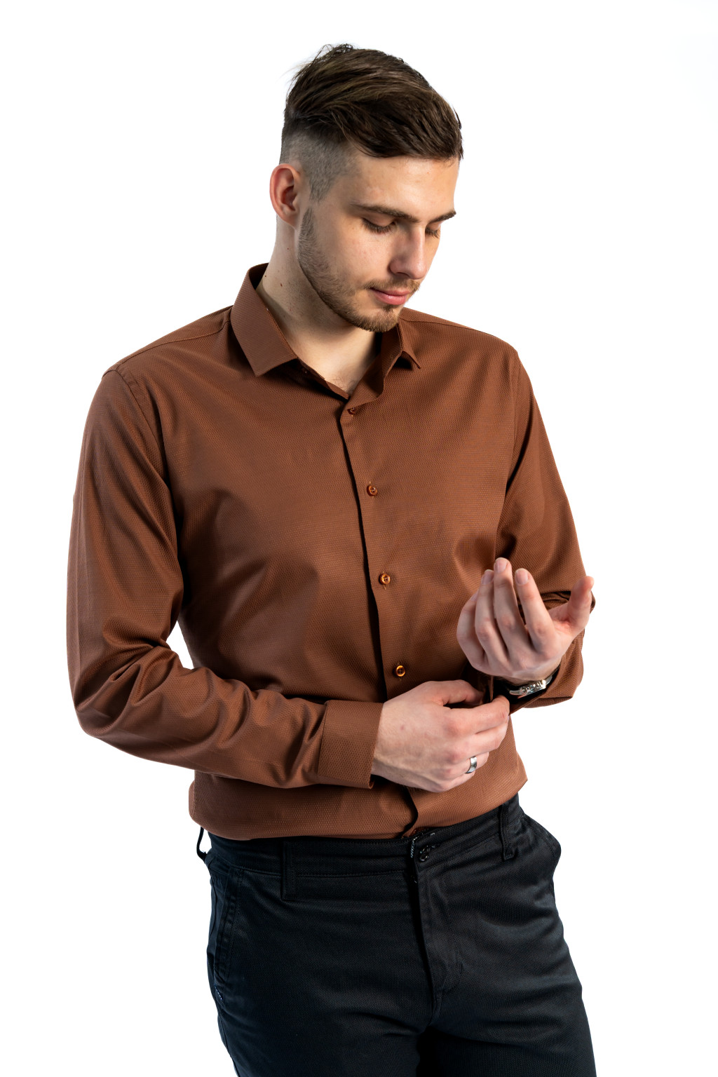 Ez a slim fit barna férfi ing kiválóan kombinálható elegáns nadrággal, chino nadrággal vagy farmerrel, így alapdarab lehet minden igényes férfi ruhatárában.