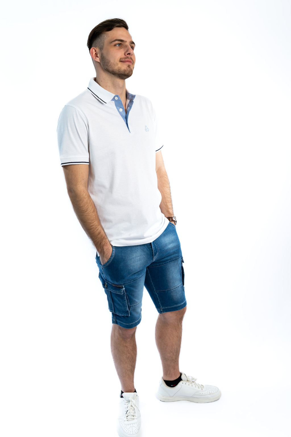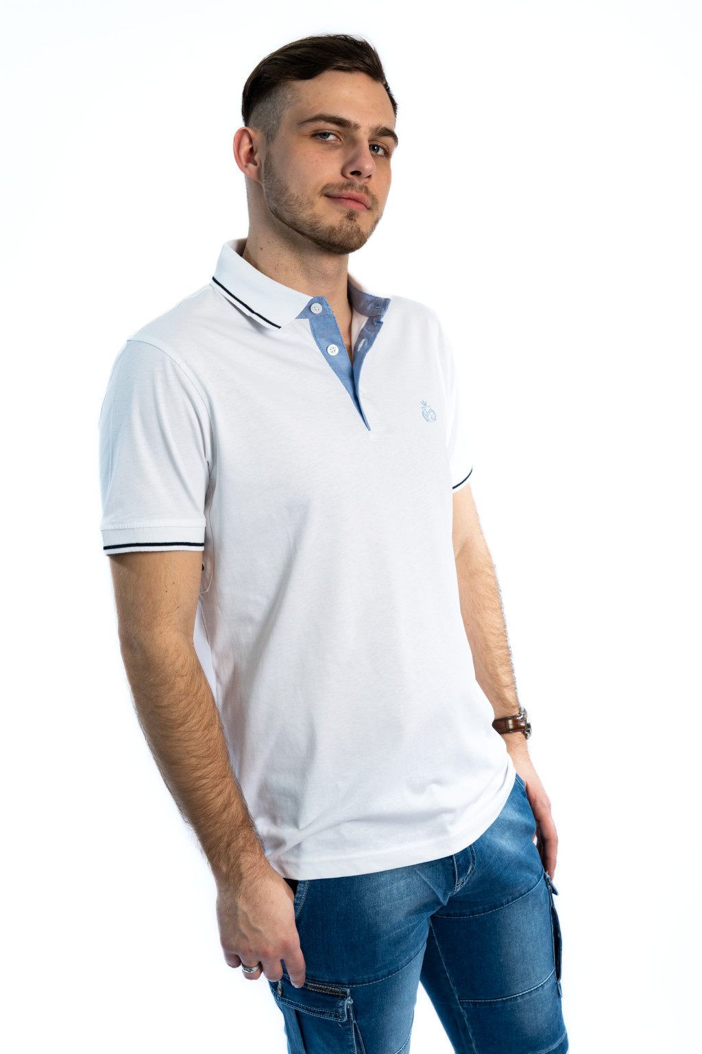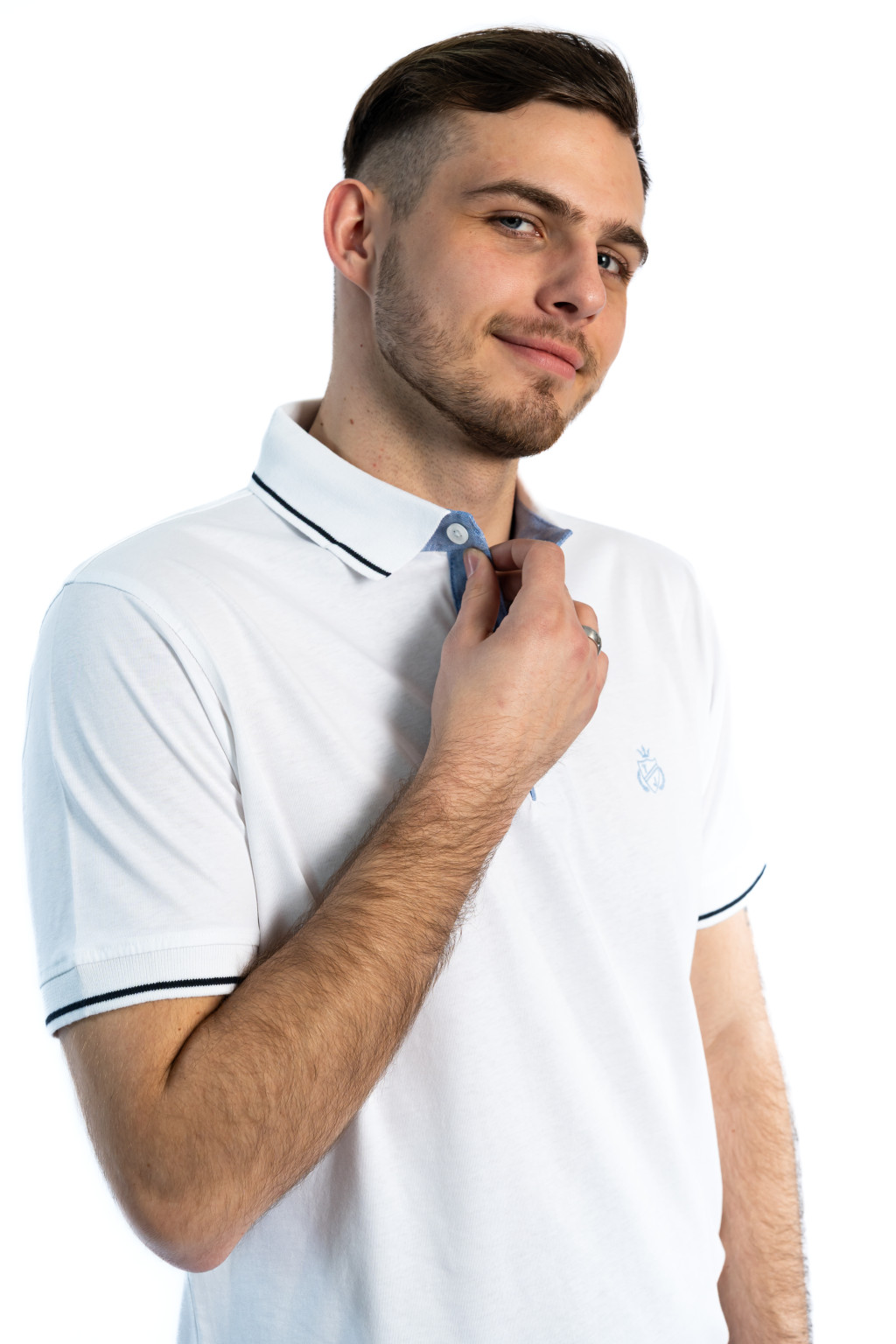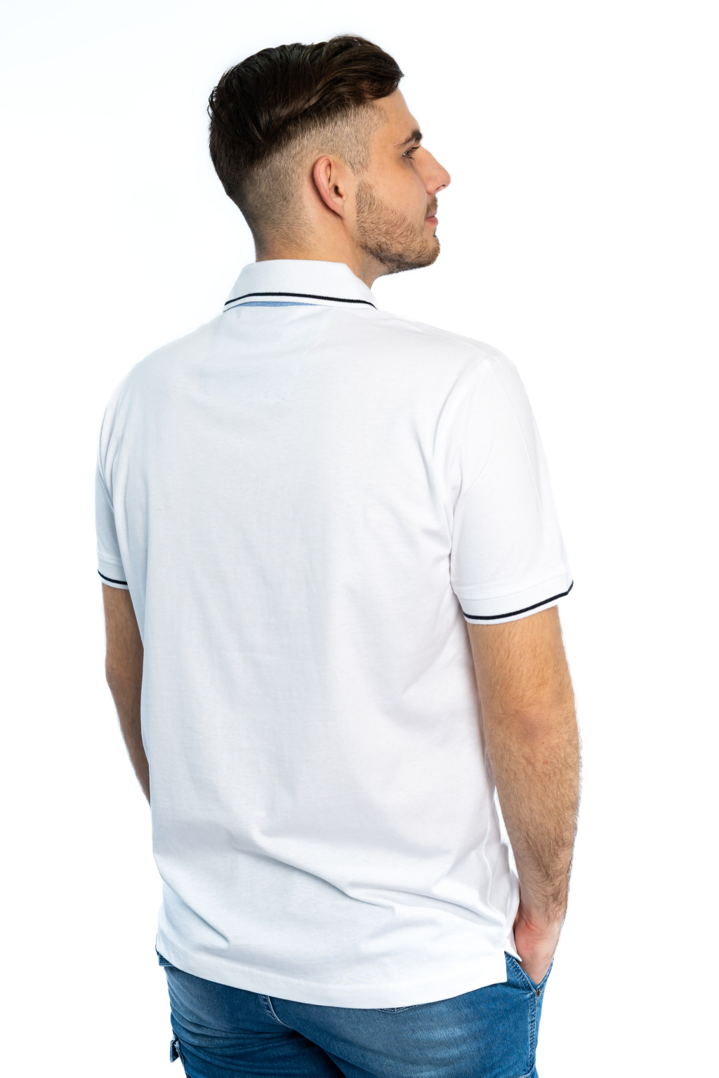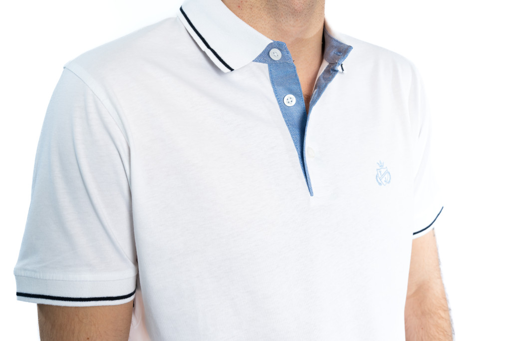 A fehér férfi galléros póló ideális választás: