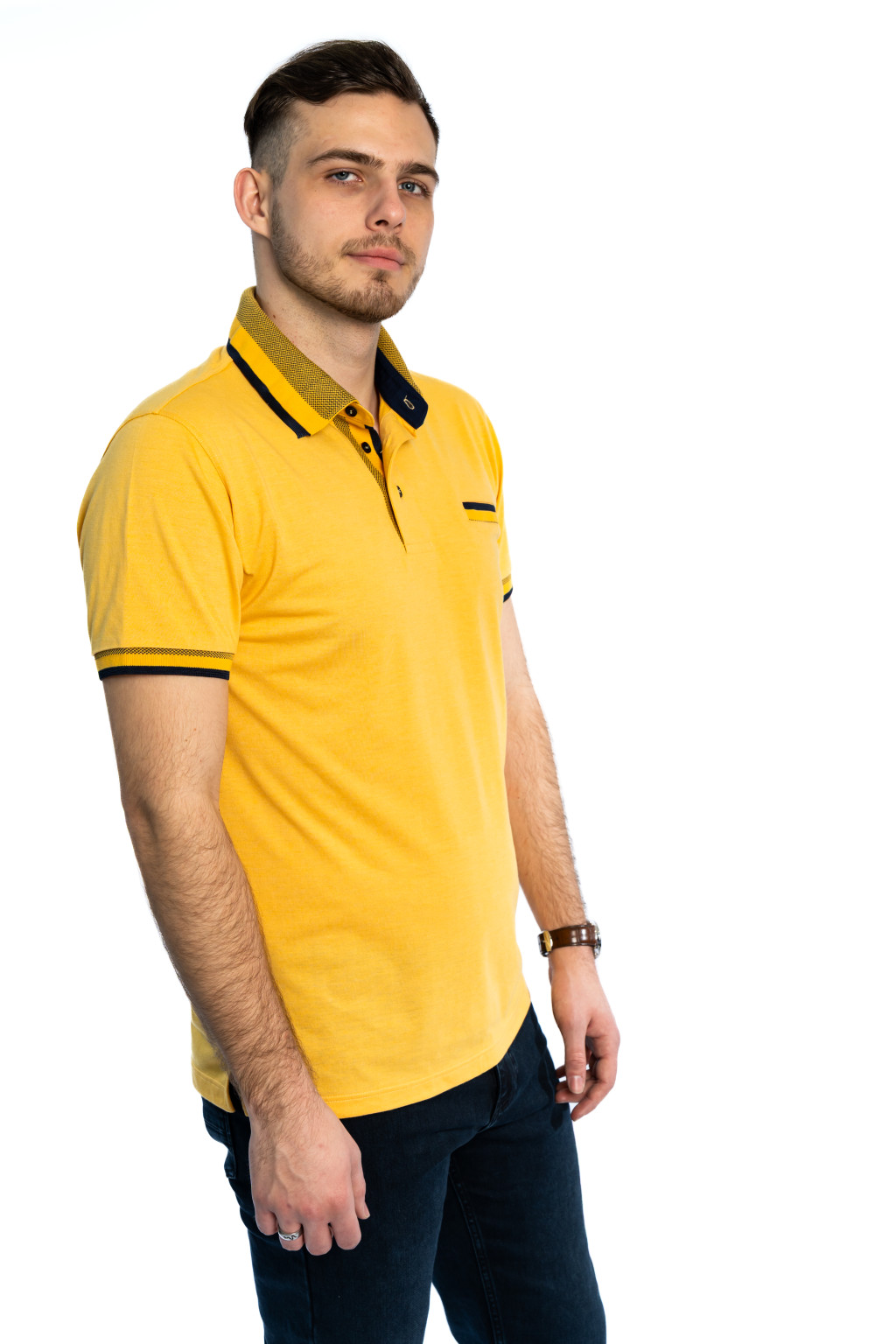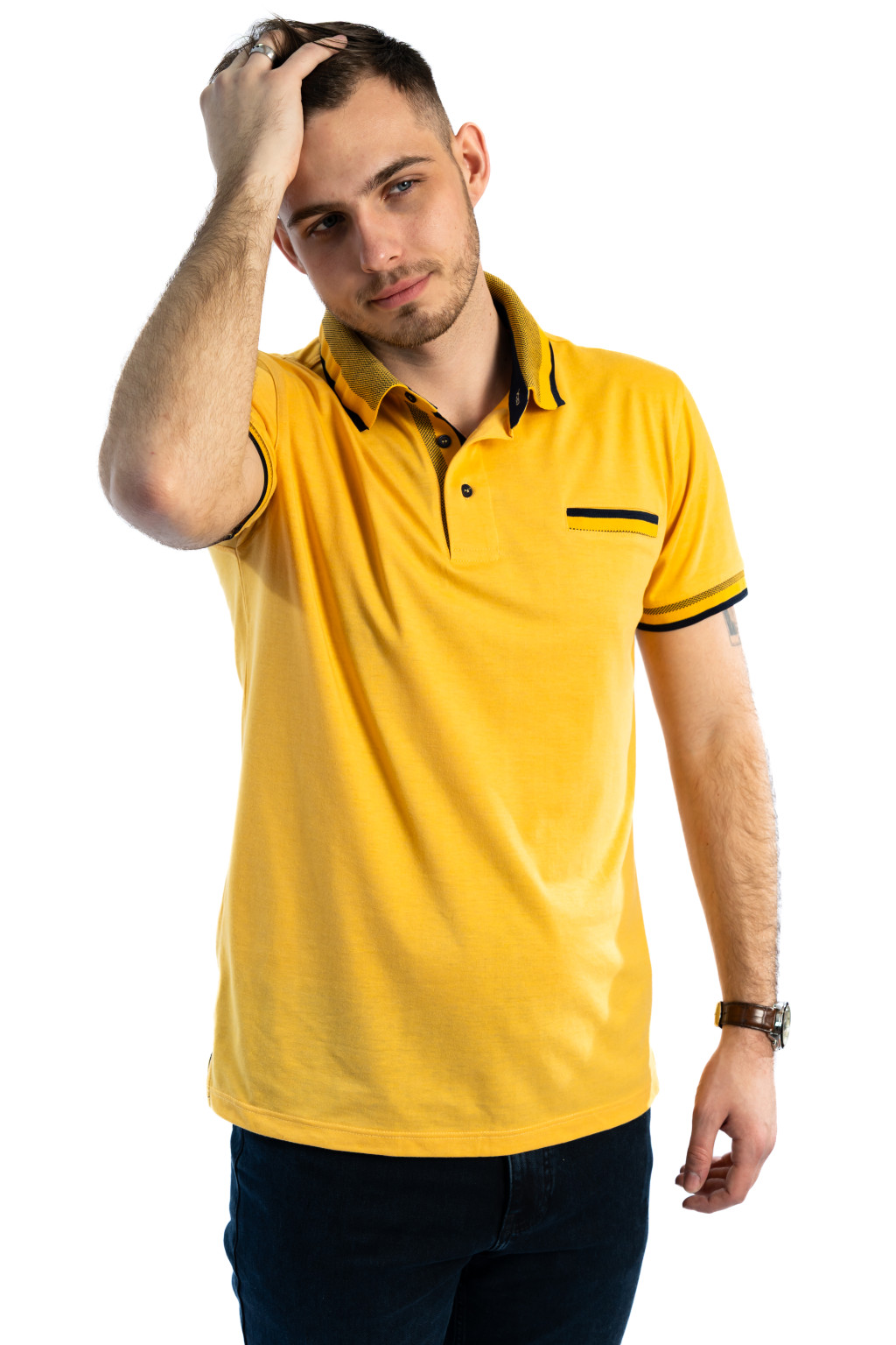Ez a mustársárga galléros férfi póló tökéletes választás azok számára, akik egy stílusos, modern és kényelmes pólót keresnek a mindennapokra. A karakteres mustársárga szín energikus, mégis elegáns megjelenést biztosít, amely kiemeli viselőjét a tömegből.