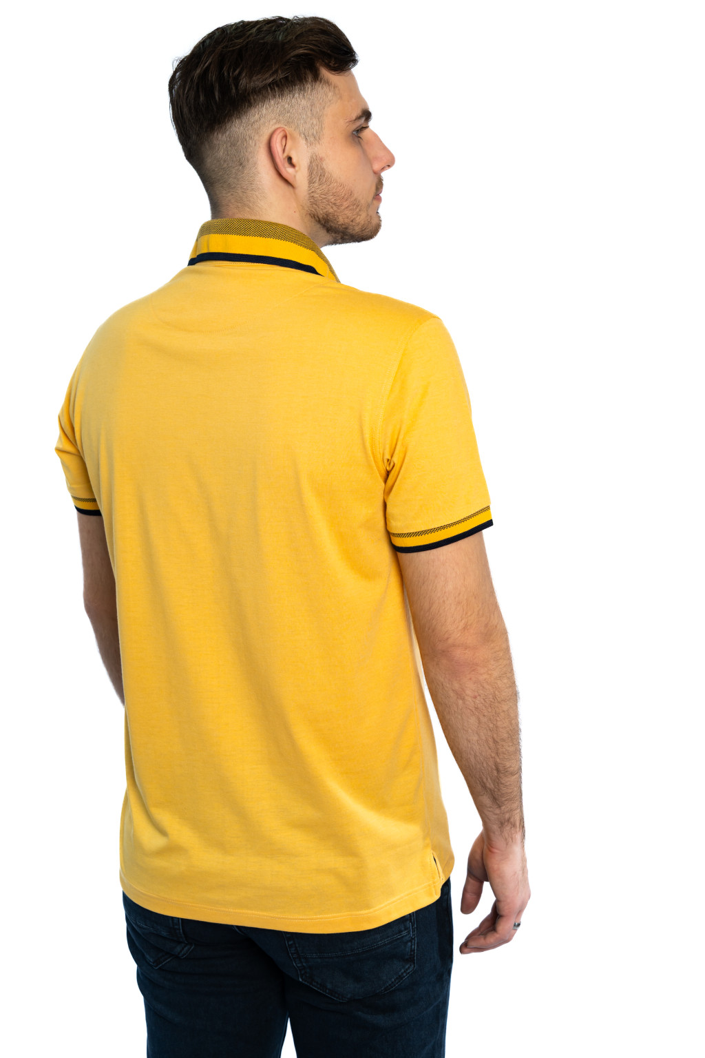 A mustársárga férfi póló nemcsak divatos, hanem praktikus is, hiszen könnyen kombinálható más ruhadarabokkal, miközben friss, modern megjelenést biztosít.