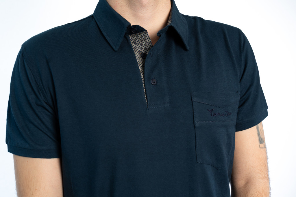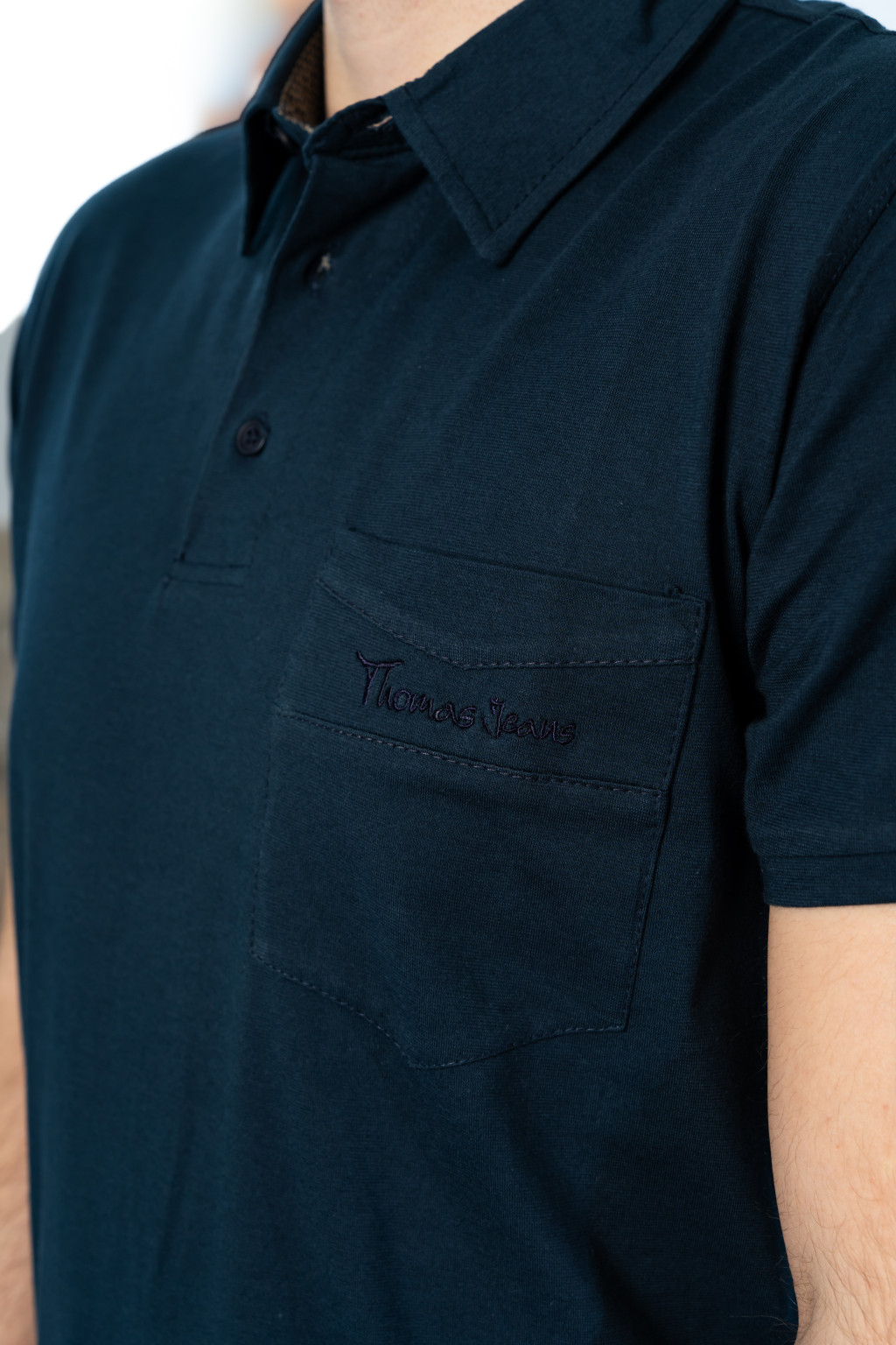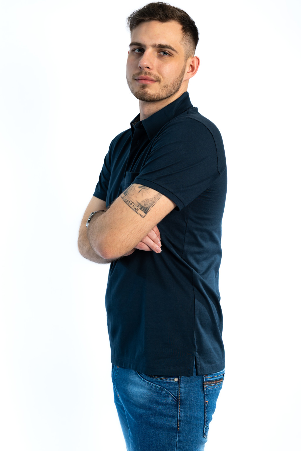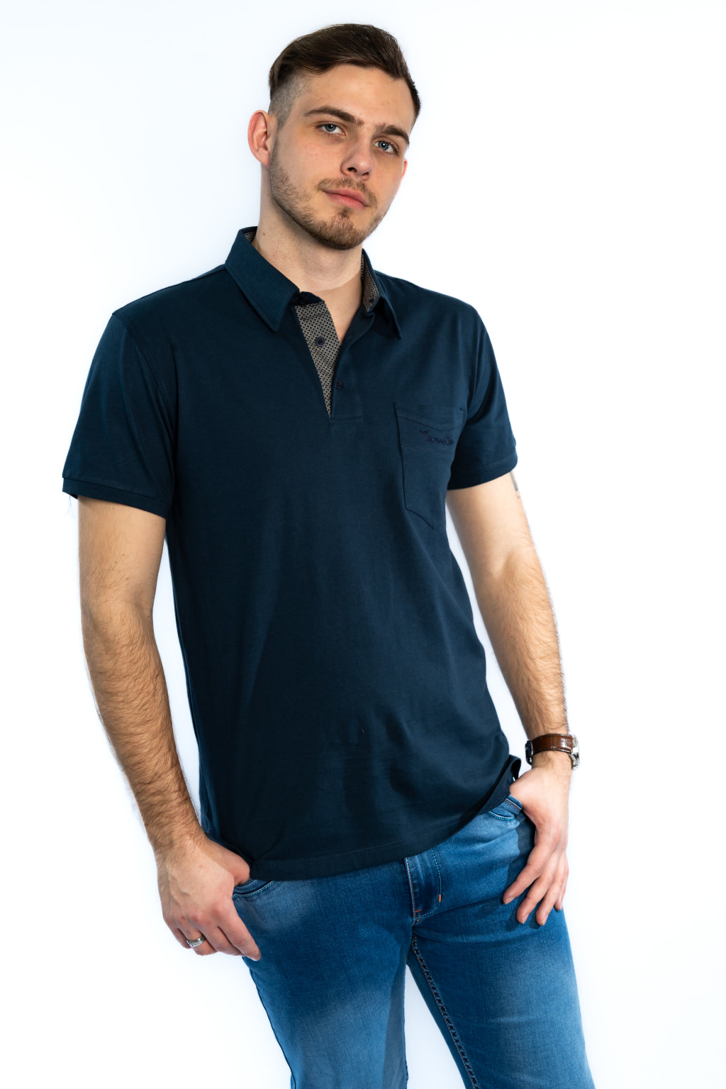 Ez a sötétkék férfi galléros póló (polo) egy letisztult, mégis részletgazdag darab, amely tökéletes választás a mindennapi elegáns, mégis kényelmes viselethez.