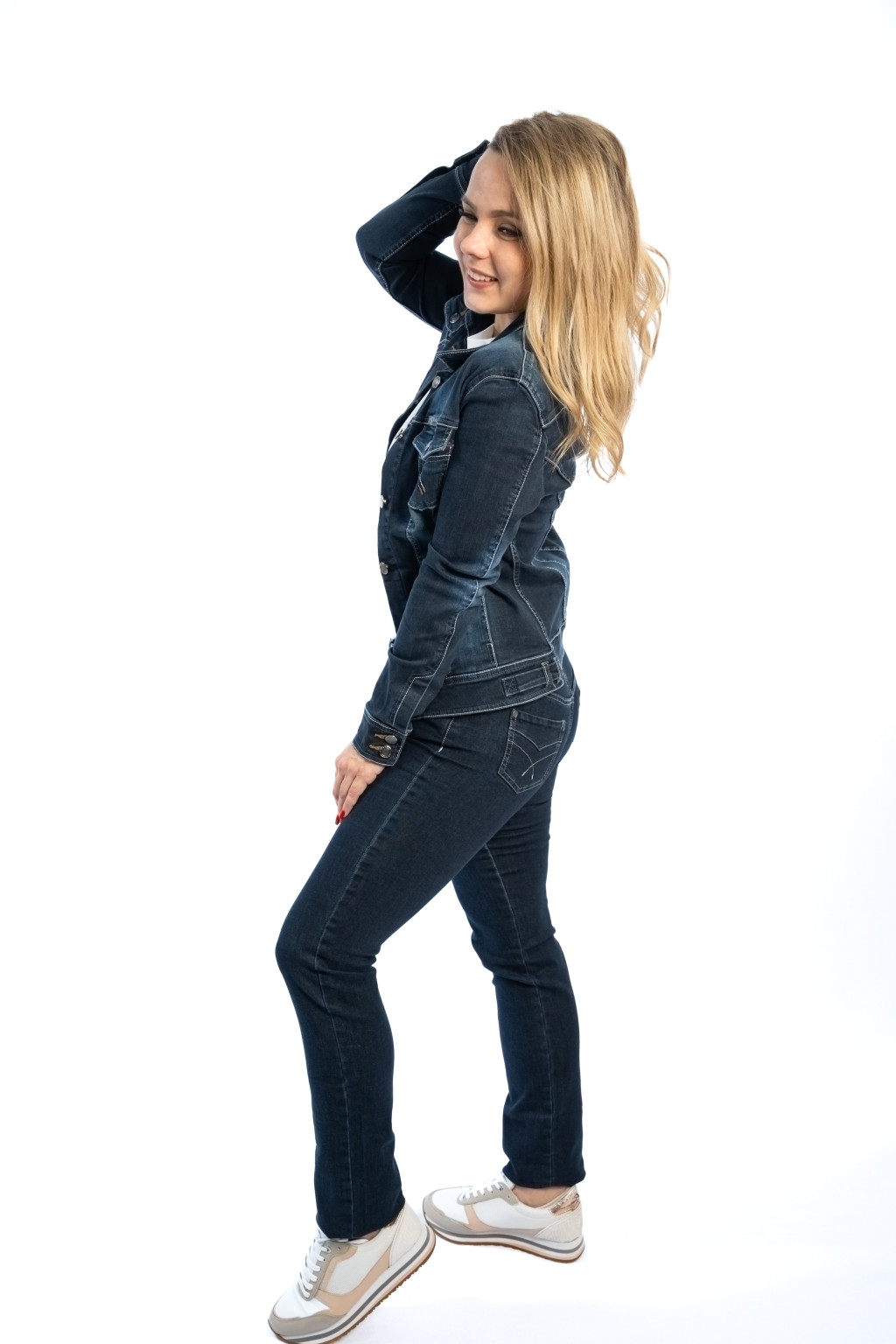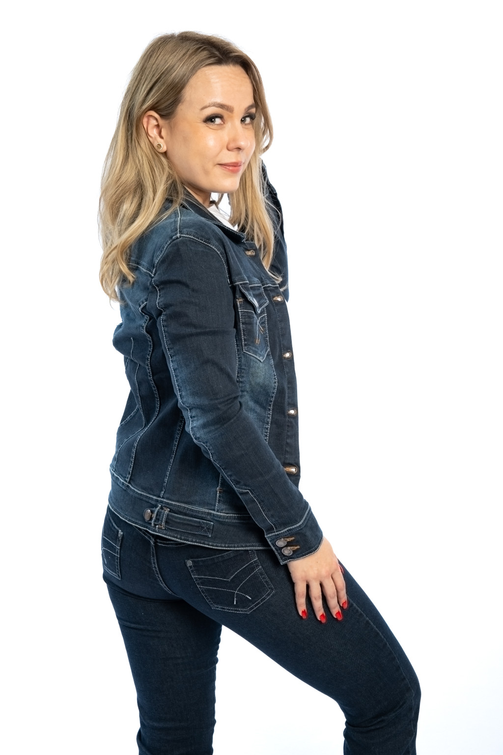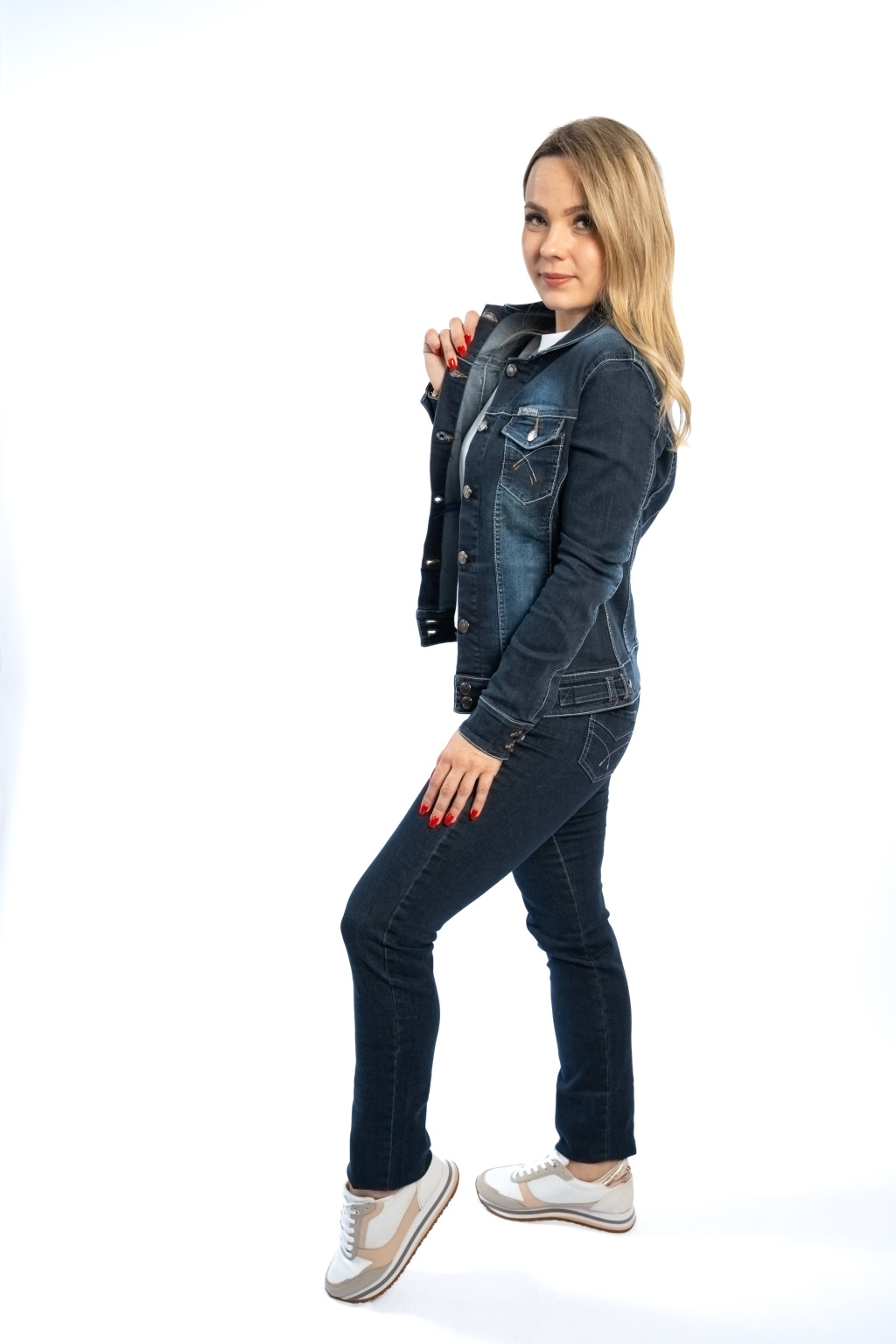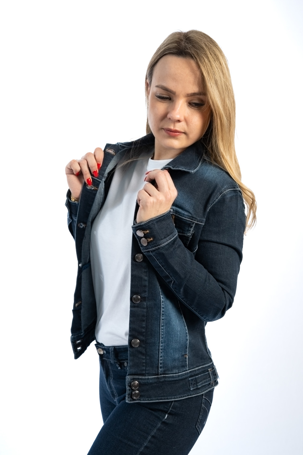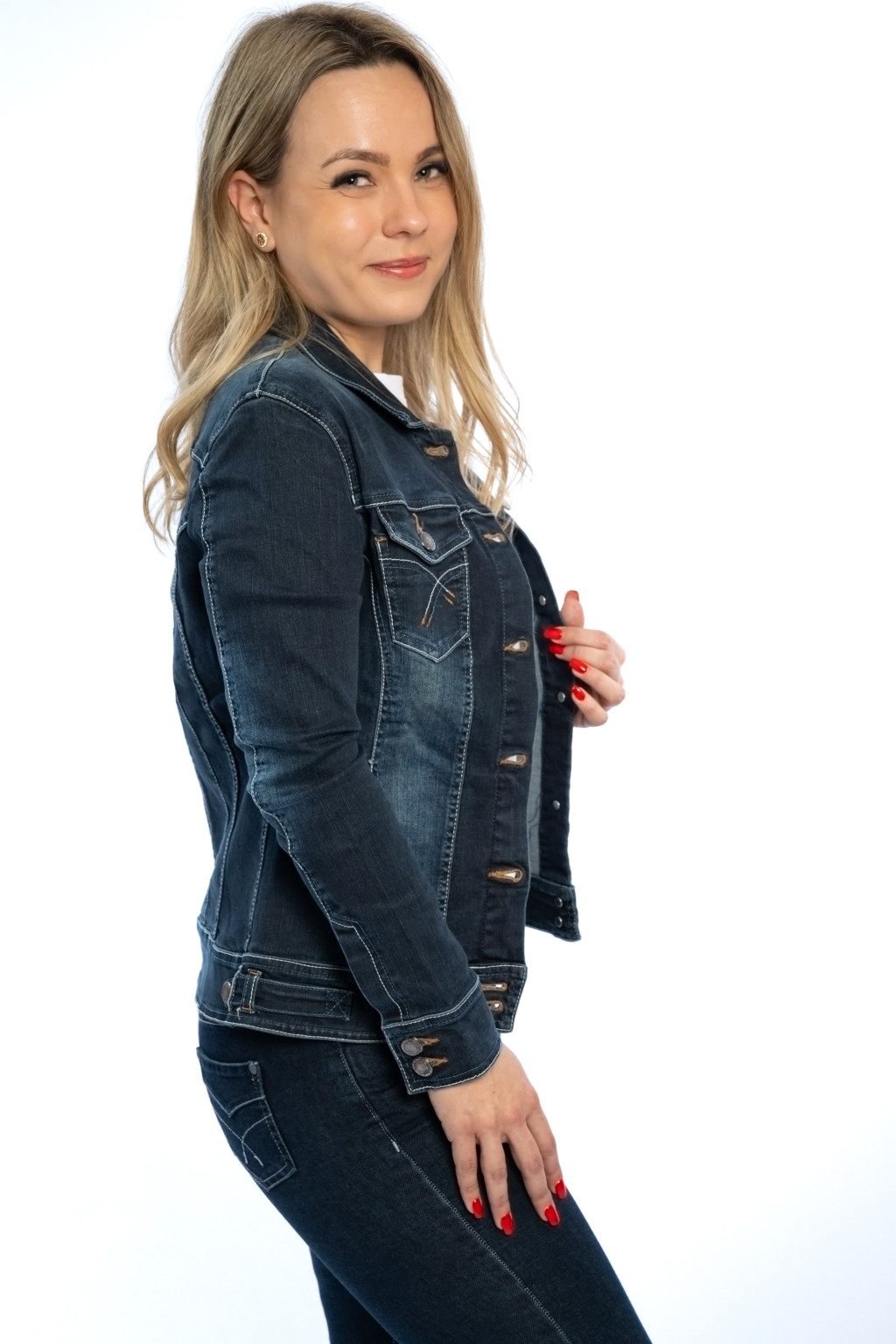 Ez a női sötétkék farmerdzseki a klasszikus farmer stílus modern, nőies változata, amely tökéletesen illeszkedik a mindennapi és alkalmi szettekhez egyaránt. A karcsúsított szabásvonal kiemeli az alakot, míg a rugalmas farmer anyag (98% pamut, 2% elasztán) maximális kényelmet biztosít.