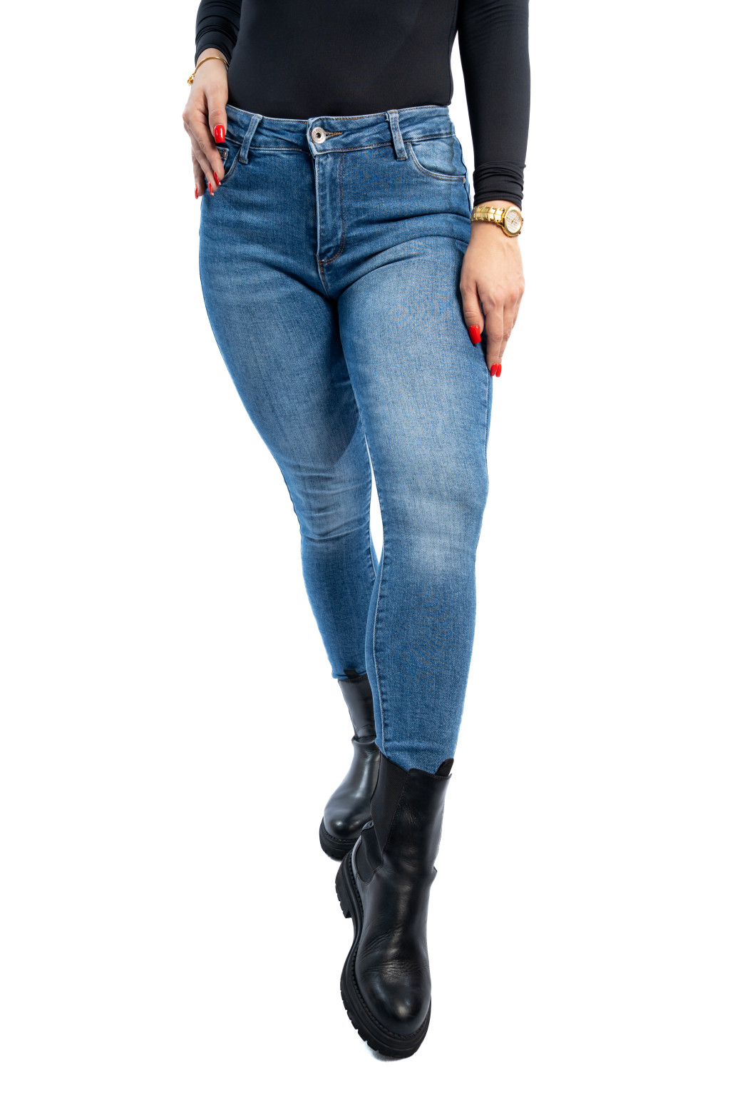 Ha egy igazán kényelmes, elasztikus és alakformáló női farmernadrágot keresel, amely egyszerre klasszikus és modern, ez a középkék push up skinny farmer ideális választás a mindennapokra.