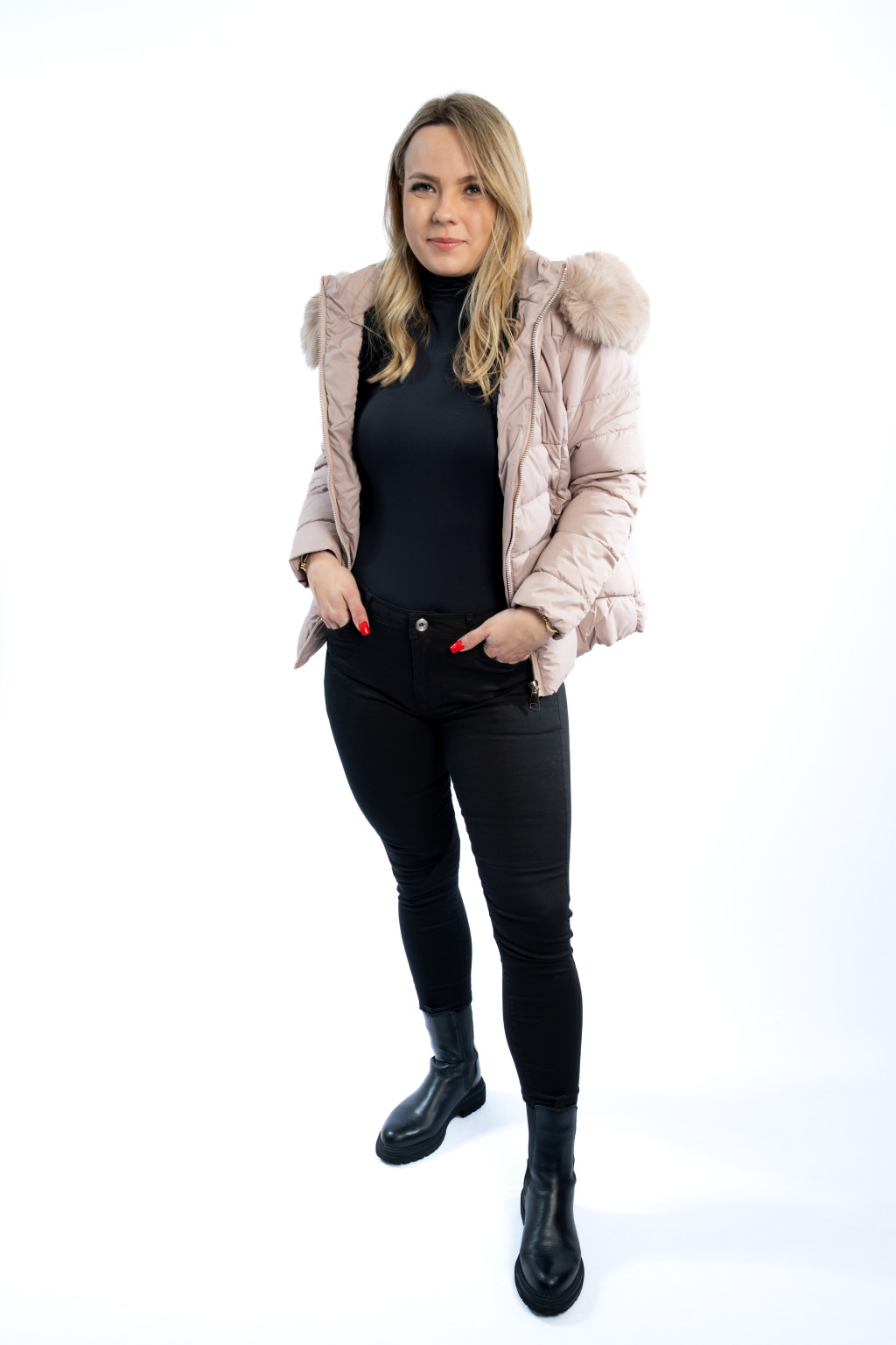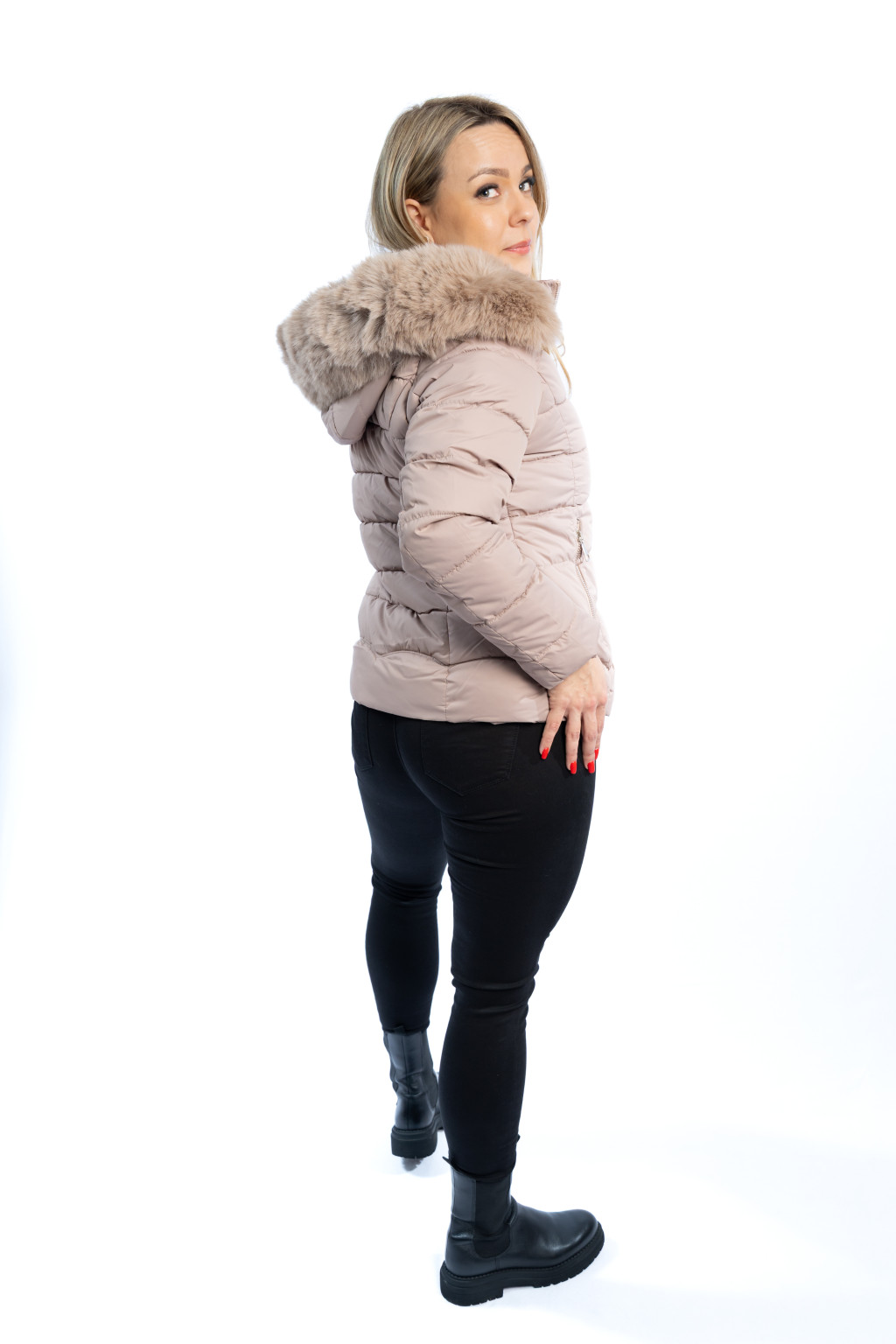 A púderbézs / világos bézs árnyalat rendkívül sokoldalúan kombinálható fekete, barna, krém vagy farmer darabokkal. Ez a divatos női téli kabát tökéletes választás hétköznapi viselethez, városi sétákhoz vagy akár elegánsabb szettekhez is.