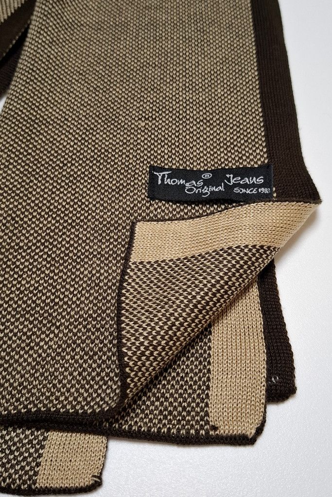 A bézs pamut-akril sál a minőség, a kifinomult stílus és a praktikusság tökéletes harmóniája – válaszd a Thomas Jeans eleganciáját a mindennapokban is!