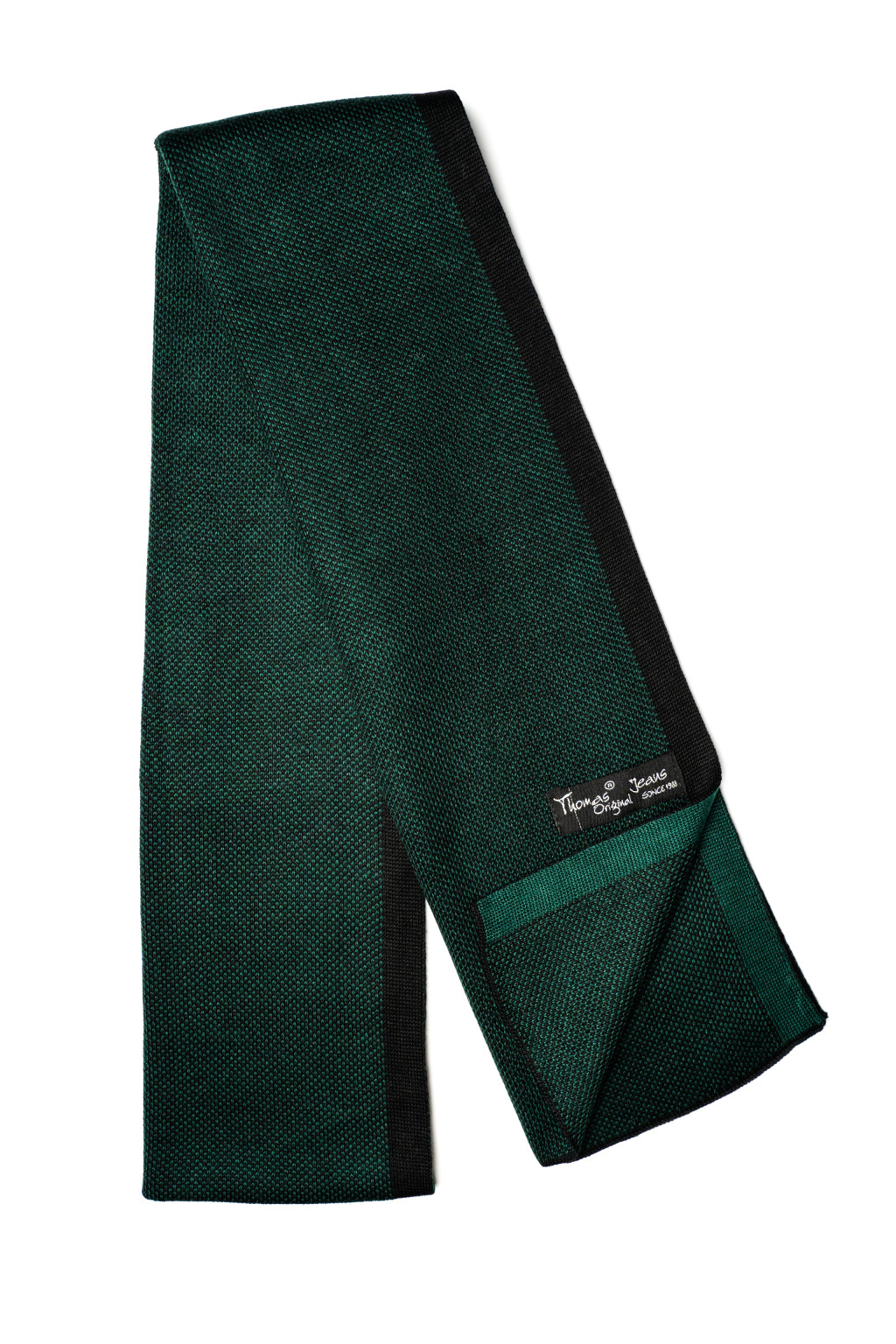 A sál modern megjelenését a mély zöld alapszín és a fekete oldalszegély adja, amely különleges, elegáns kontrasztot teremt. A prémium érzetet tovább erősíti a Thomas Jeans Original márkajelzés, amely garantálja a kifogástalan minőséget.