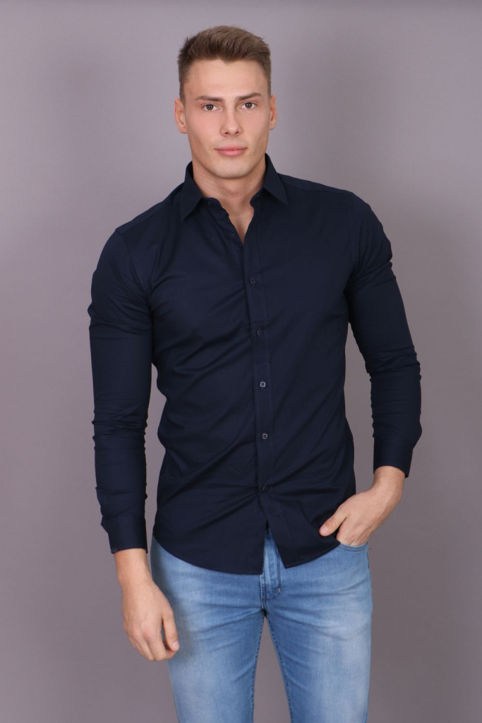A mély sötétkék szín minden öltözködési stílushoz könnyen kombinálható — legyen szó munkahelyi megjelenésről, elegáns eseményről vagy hétköznapi viseletről. Az ing hosszú ujja, klasszikus gallérja és precíz szabása garantálja a kifinomult, igényes összhatást.