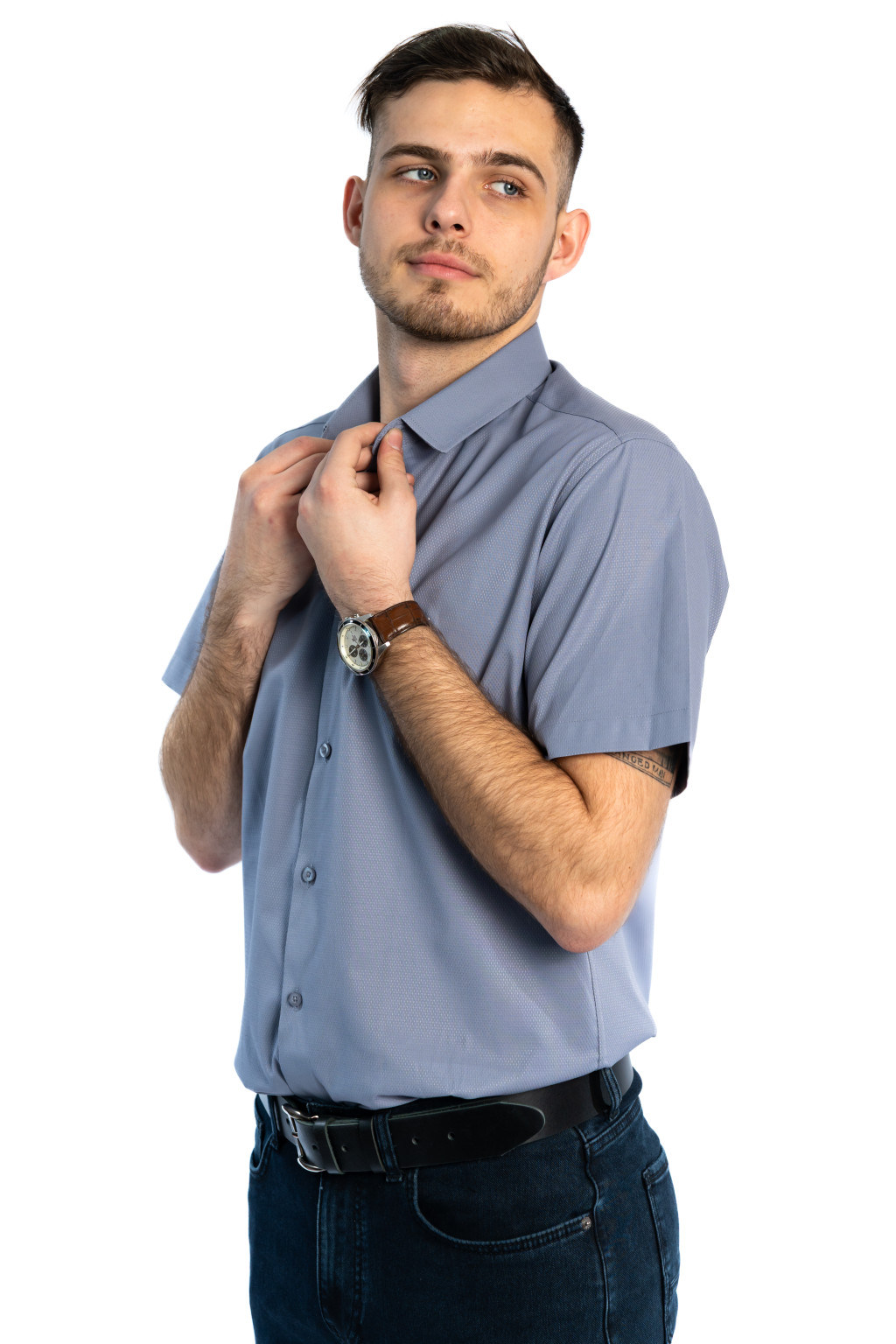 A rövid ujjú férfi ing kialakítása ideális választás tavaszi és nyári időszakra, legyen szó hétköznapi viseletről vagy elegánsabb alkalmakról. A letisztult szabás és a finoman texturált felület egyaránt alkalmassá teszi ezt a darabot irodai, casual és smart casual szettekhez is.