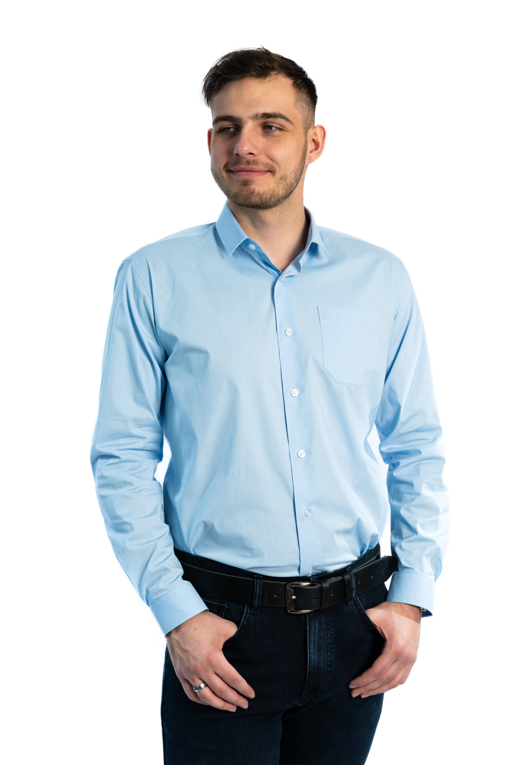Ez a klasszikus férfi ing tökéletes választás irodába, tárgyalásokra vagy akár hétköznapi elegáns megjelenéshez is. A világoskék szín friss, tiszta hatást kelt, így minden gardrób alapdarabja lehet.