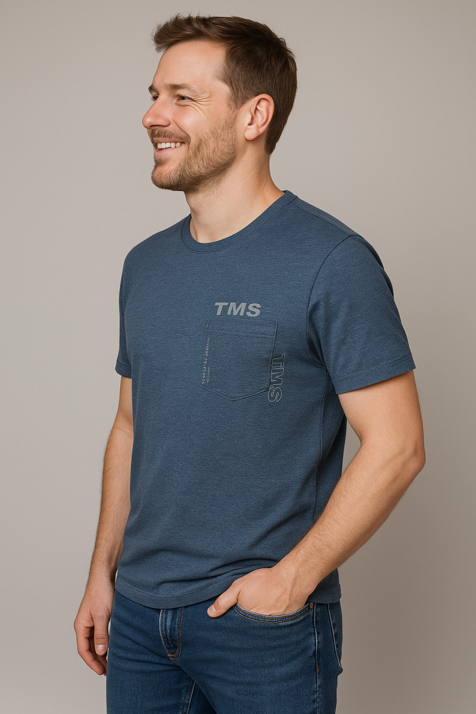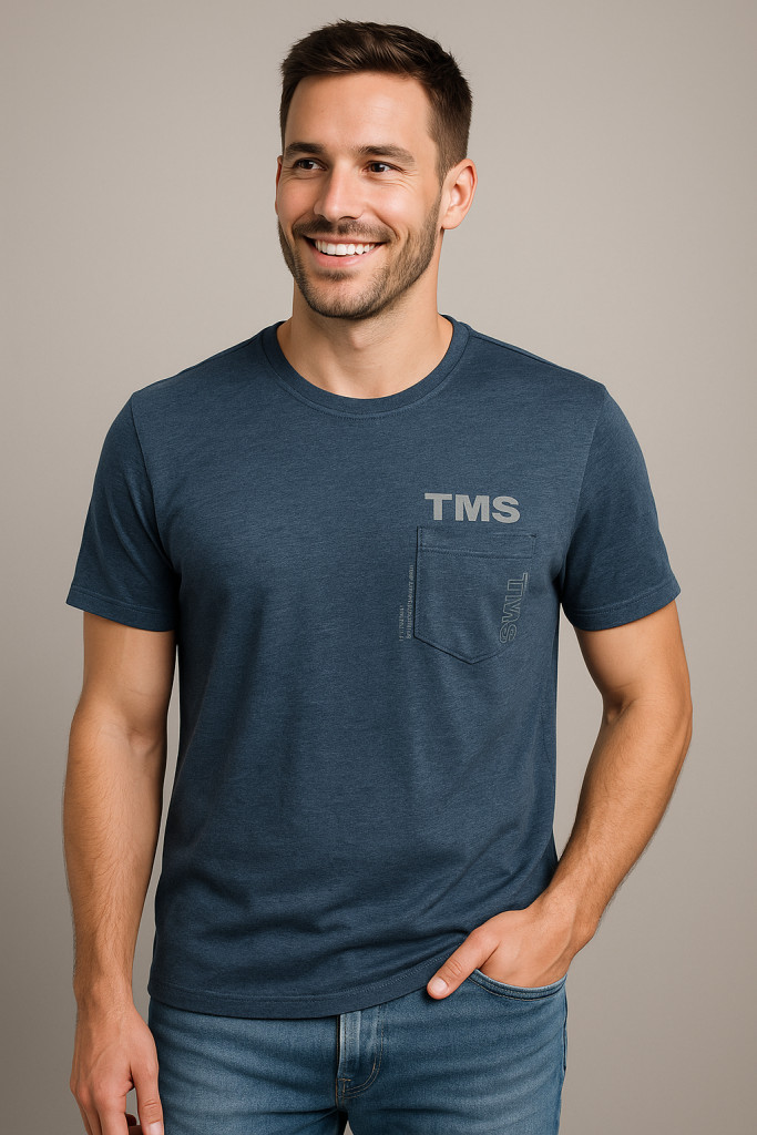 A Thomas Jeans TMS kék férfi póló a letisztult stílus és a kényelmes viselet tökéletes kombinációja. Klasszikus fazonja, kerek nyaka és diszkrét TMS logója sportosan elegáns megjelenést biztosít. A mellkason található kis zseb praktikus és divatos részlet, amely feldobja az egyszerű dizájnt.