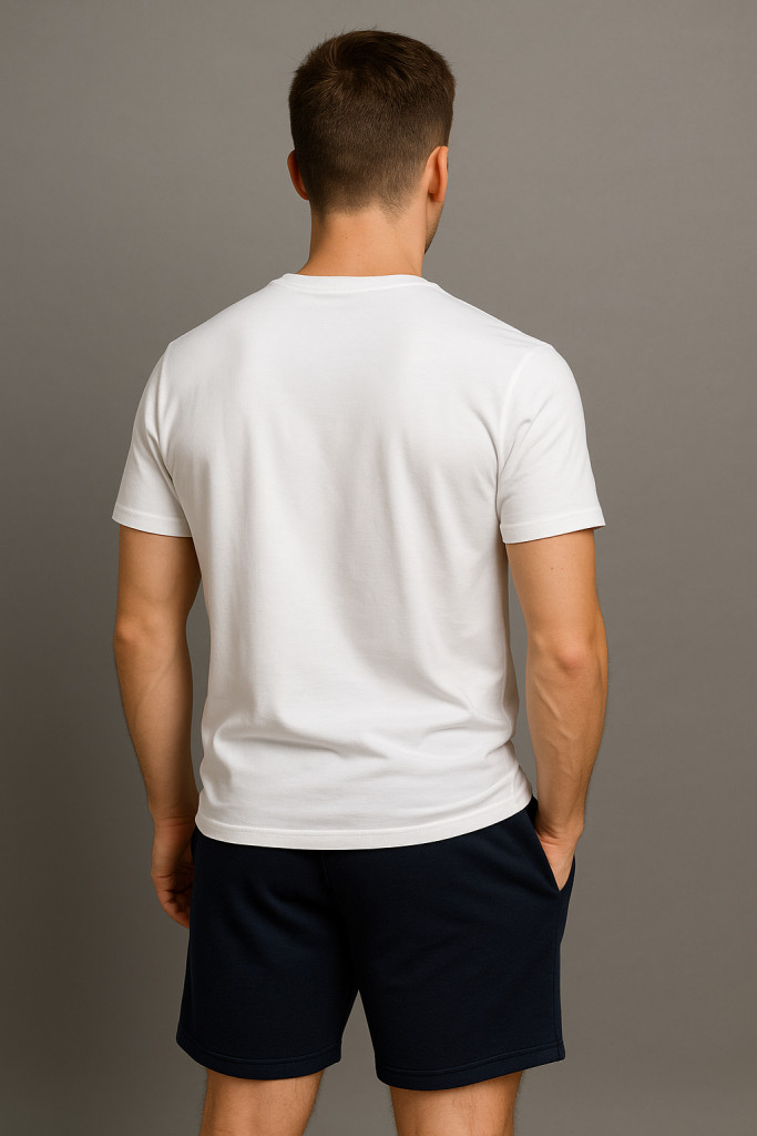 A póló 97% pamut és 3% elasztán anyagból készült, ami nemcsak puhaságot és légáteresztést, hanem enyhe rugalmasságot is biztosít. Ezáltal tökéletesen követi a test vonalát, és kényelmes mozgásszabadságot ad. A klasszikus kerek nyakú fazon és a rövid ujjú kialakítás ideálissá teszi mindennapi viselethez – akár farmerrel, akár nyári nadrággal kombinálva.